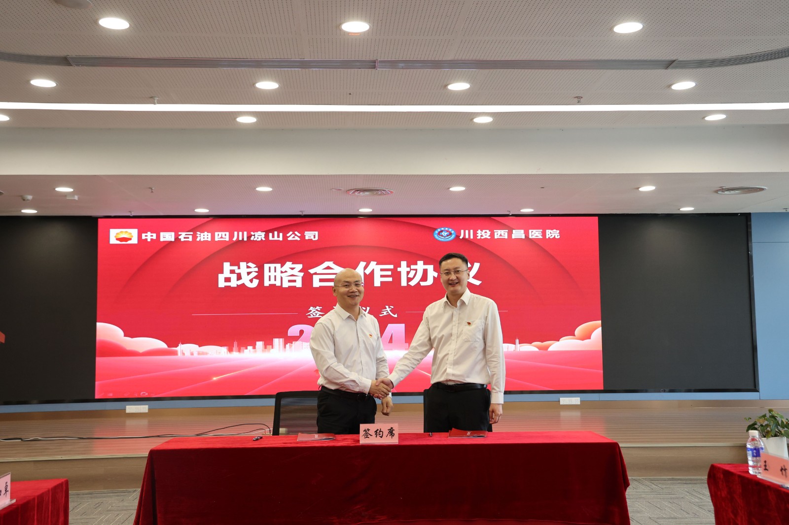 4月26日下午,中国石油四川凉山销售分公司党委书记、执行董事石磊,党委副书记、总经理何雅丽一行到川投西昌医院参观、座谈并签订战略合作协议。公司党委书记、董事长龚坚及在家领导班子出席签约仪式。
