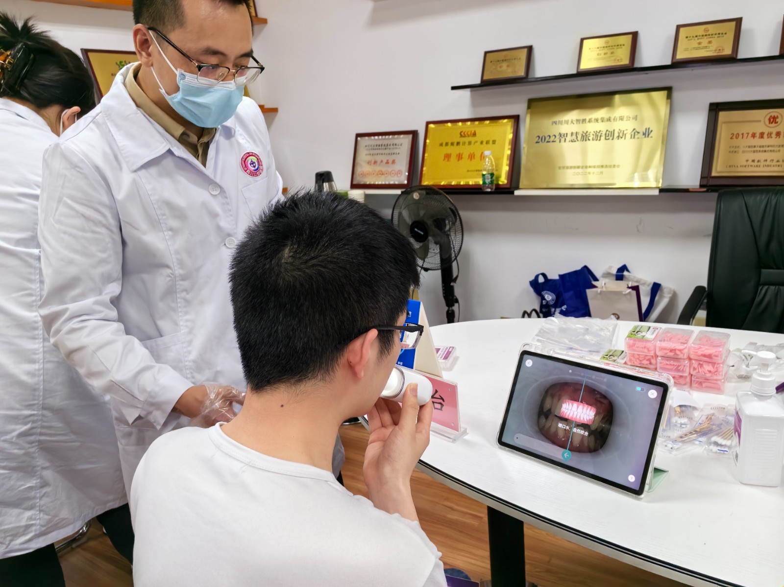 随后,四川口腔医院医疗团队利用先进的MOOELI AI口扫、数字化等技术为参加活动的智胜集成员工进行了一对一口腔检查服务,还细致地回答了职工们关于口腔健康的各类问题,得到了参与职工的广泛好评。