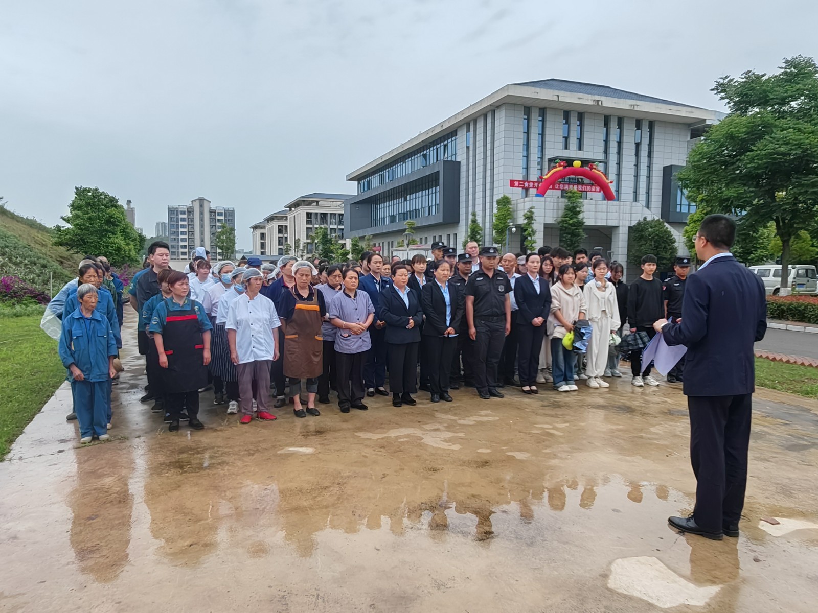 随着警报声响起,按照区域和楼层划分,以班级为单位,在各班辅导员和后勤工勤单位工作人员的带领下,同学们按照预先设定的疏散方案向指定区域进行快速、有序、安全撤离。整个演练过程用时4分21秒,全体同学积极配合,沉着冷静,一切行动听指挥,紧张有序地撤离至安全区域。