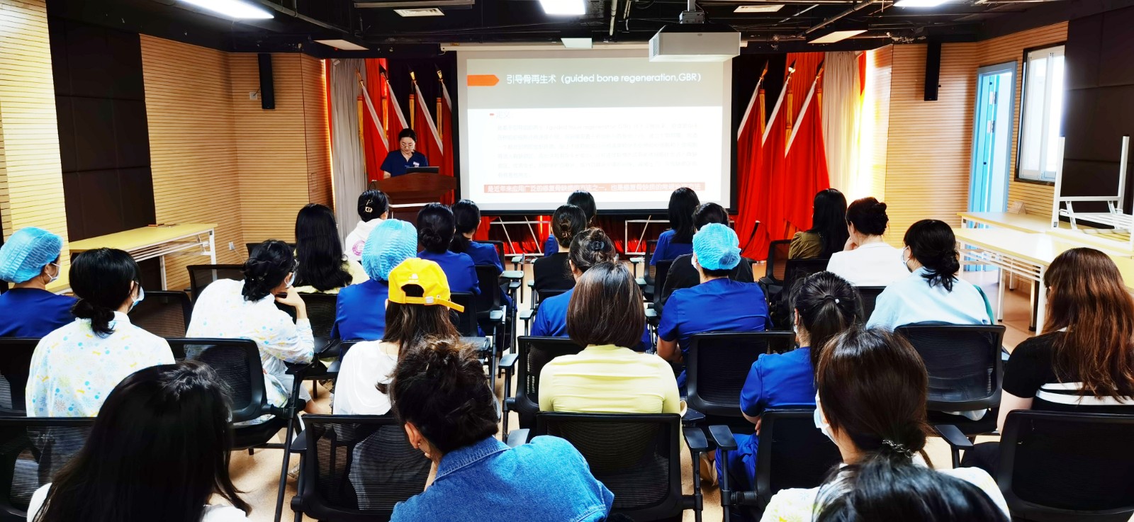 随着老百姓生活水平的提高和对口腔健康的关注,口腔种植技术已成为牙齿缺失的常规治疗项目,越来越多的患者把种植牙作为首选修复方式。为了进一步规范口腔种植临床护理技术,提升口腔护理工作实效,持续改进护理质量,5月14日下午,四川口腔医院组织开展了“牙种植骨增量患者护理”培训,医院共50余名护士参与。