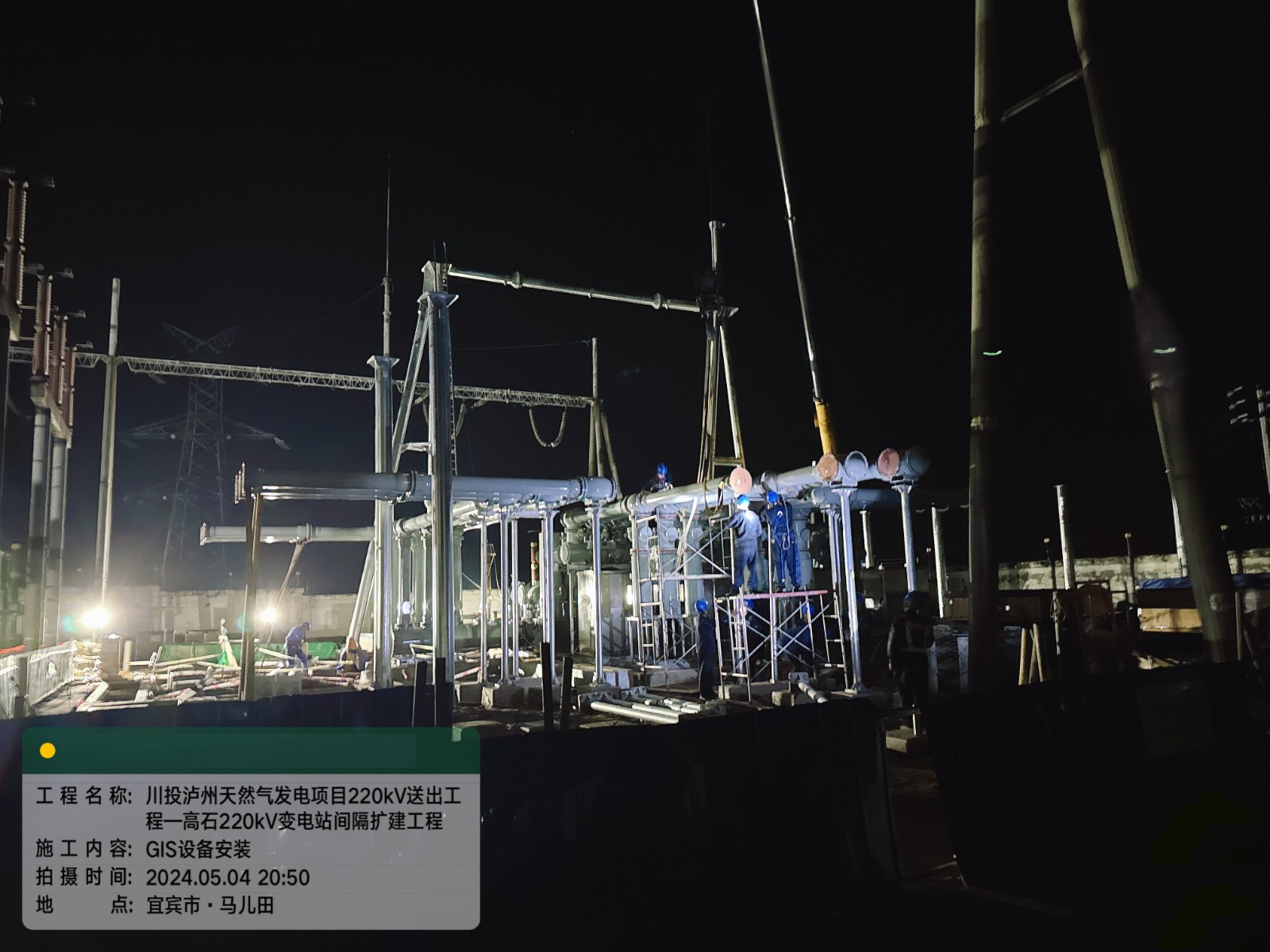 高石变电站220千伏间隔扩建工程是川投泸州天然气发电项目220千伏送出工程的一个重要单项工程,工程主要是将高石变电站的2个AIS间隔改造为4个GIS间隔。高石变电站为运行站,为全力减小作业停电对宜宾电网供电安全造成影响,泸州气电坚持安全第一,科学统筹、精心组织,接连克服运行站施工协调面广、拆装设备吊装频繁、雨季作业难度大等诸多困难,见缝插针、挑灯夜战,提前半个月完成了高石变电站220千伏间隔扩建工程施工。