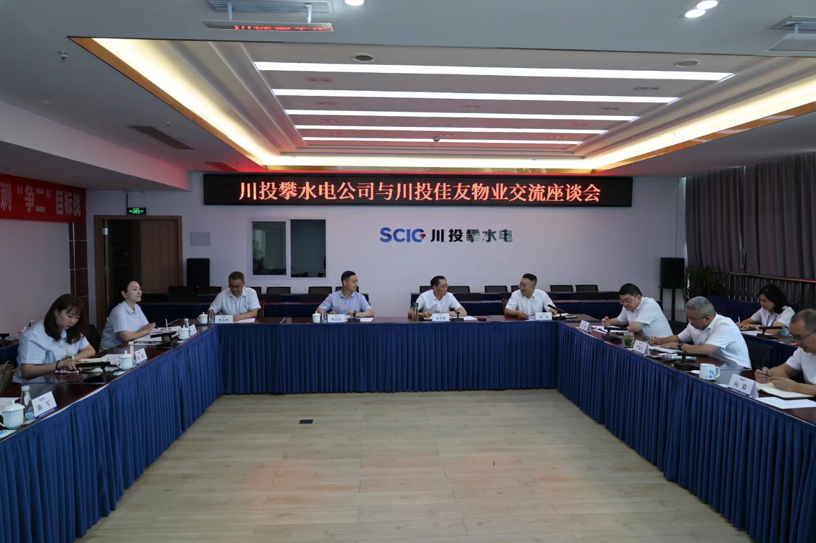 随后,陈志宏一行与川投能源攀水电公司进行了交流座谈会,川投能源副总经理、攀水电公司党总支书记、董事长徐孝刚对陈志宏一行的到来表示欢迎,感谢川投佳友为攀水电公司提供高品质的物业服务,同时希望今后双方加强深度合作,让川投佳友银江水电站项目“做大、做强”。陈志宏表示,感谢业主对川投佳友的理解、支持和信任,川投佳友将进一步提升服务品质,树立佳友的品牌形象,让业主放心、安心。
