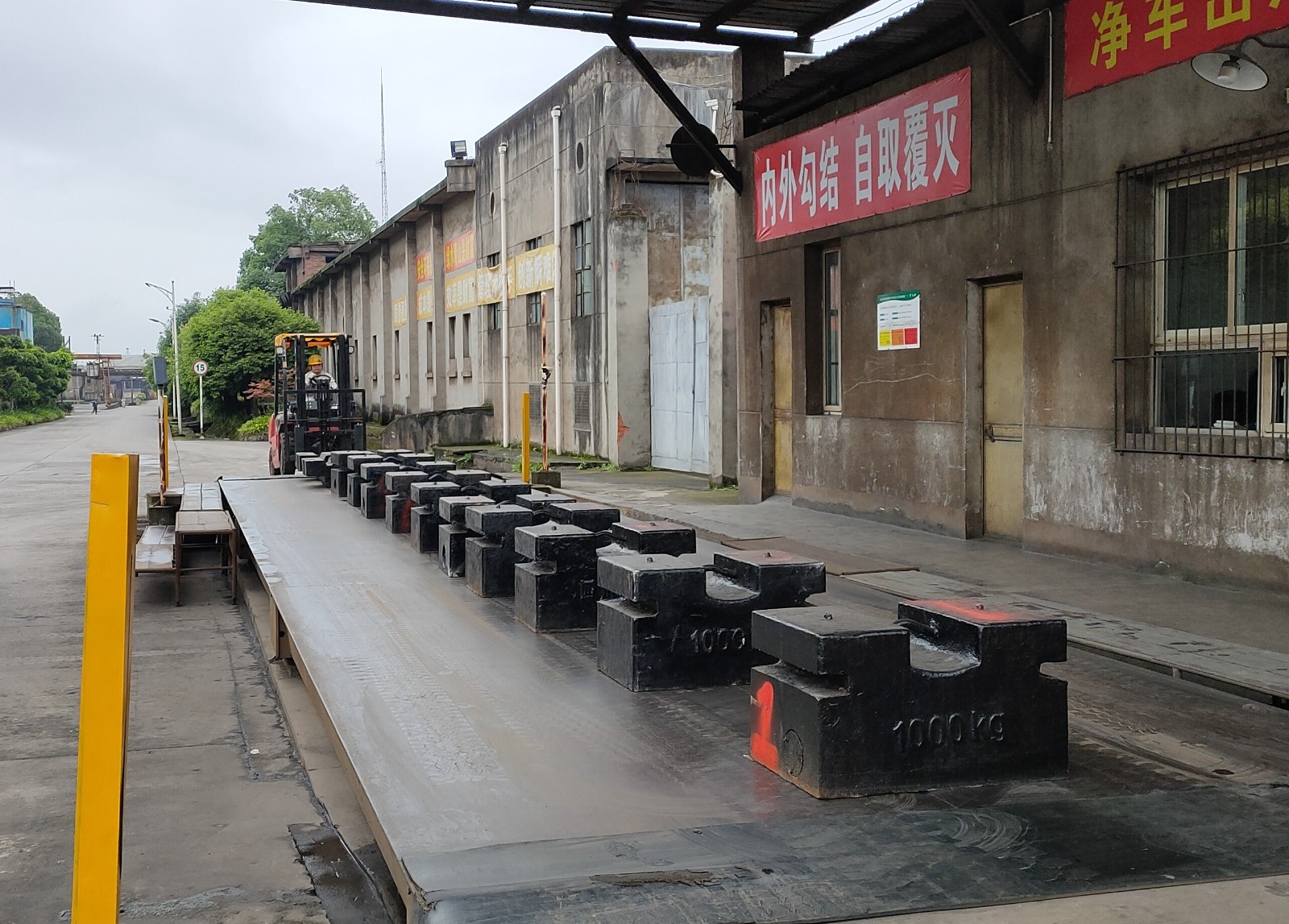 为确保本次检定工作如期进行,公司提前多次与属地管理部门沟通,在峨眉山市市场监督管理局的大力支持协调下,调用了峨胜水泥集团股份有限公司的12只1000kg级的标准大砝码用于本次检定;相较于采用峨眉山市市场监督管理局配置的20kg级标准小砝码进行检定,有效减少了检定过程用时10小时以上。同时,为提高本次检定过程的工作效率、检定准确度,以及将影响当天进出公司车辆的检斤时间压缩到最短创造了条件,减少了人力、物力资源浪费。
