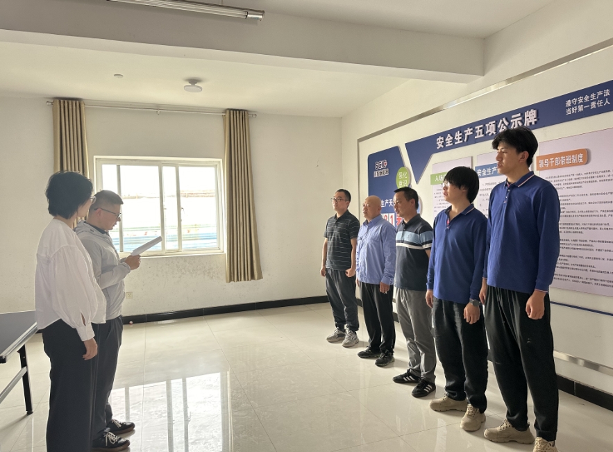 活动首先由李超传达学习四川能监办及川投新能源公司等下发的关于开展2024年“安全生产月”活动的通知,组织全员进行安全承诺宣誓并提出具体要求,一是全体员工严格贯彻落实安全生产月通知要求,细化任务,明确分工,确保组织到位、责任到位、落实到位;二是深入开展安全事故警示教育,认真学习事故经验教训,举一反三,以案为鉴,深入反思查找存在问题和不足,坚决遏制类似事故的发生。