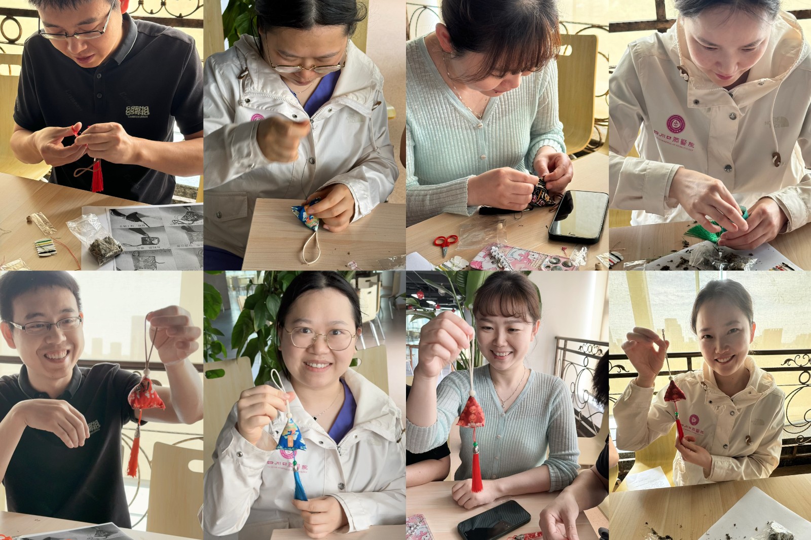 诵读活动后,组织党员、团员手工制作香囊。经过穿针引线、缝边、装艾草、封口、定型等工序后,完成了香囊制作。大家把制作好的精美香囊展示出来,一起交流欣赏,传达着幸福安康的美好愿望。