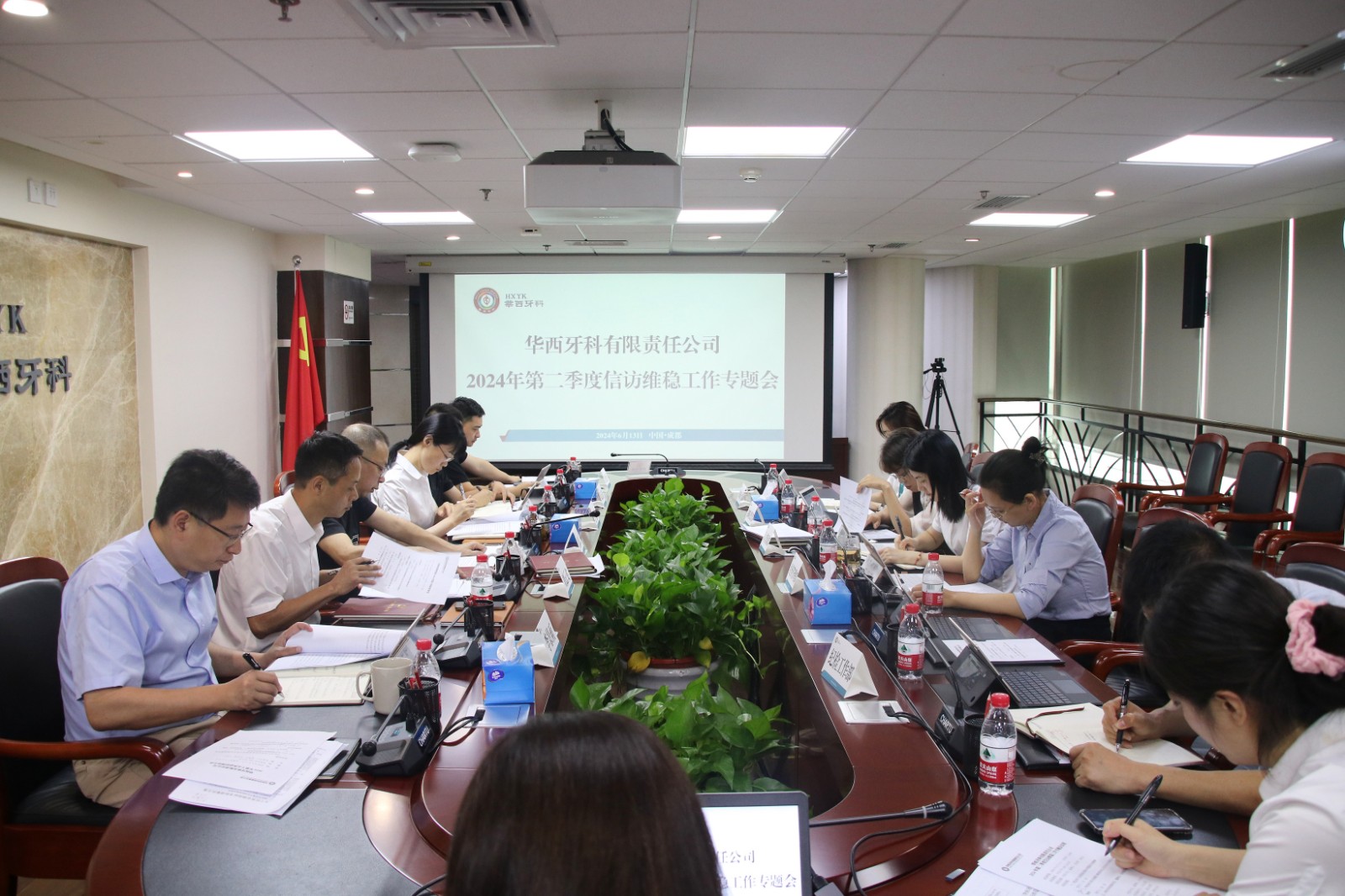 6月13日上午,华西牙科党委召开2024年第二季度信访维稳工作专题会。会议由华西牙科党委书记、董事长、总经理刘凌云主持,华西牙科在家班子成员、各部门负责人参加会议。