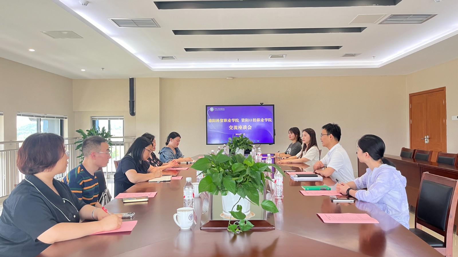 近日,德阳科技职业学院医学与健康学院执行院长权琳一行来校调研交流。资阳口腔职业学院副院长刘洪出席座谈会,教学事务部、交流合作部相关负责人、工作专员参会。