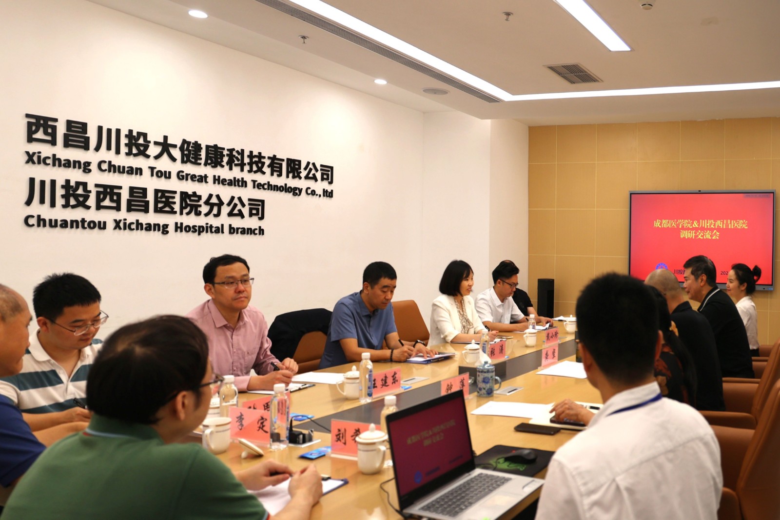 6月19日,成都医学院党委常委、副校长张涛一行到川投西昌医院交流调研,川投西昌大健康党委书记、董事长龚坚,川投西昌医院院长金鸿及在家班子成员参与调研。