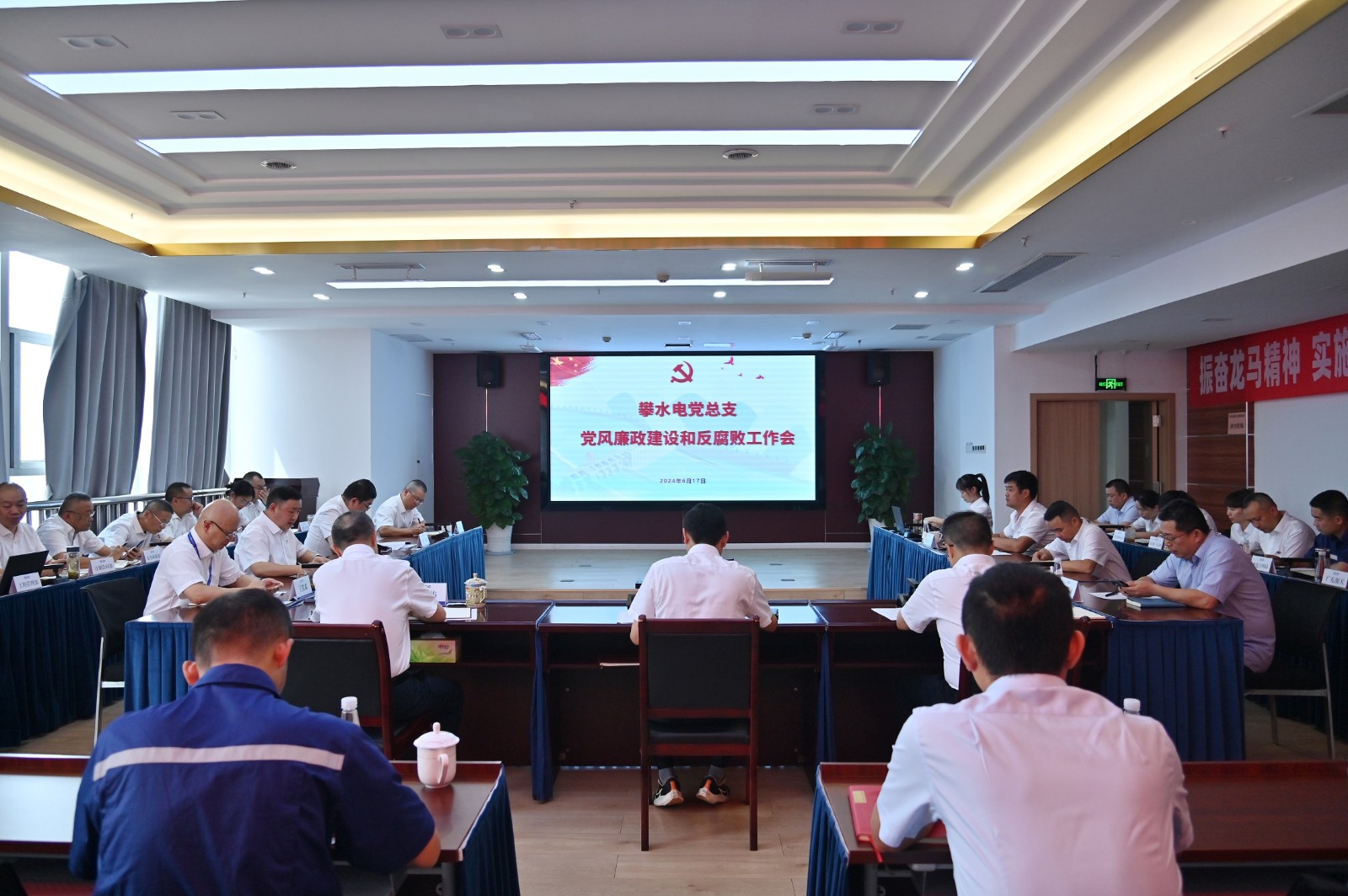 近日,川投能源所属攀水电公司党总支组织召开党风廉政建设和反腐败工作会。会议由党总支委员、纪检小组长杨锐主持,川投能源副总经理、攀水电党总支书记、董事长徐孝刚和其他领导班子成员出席会议,主要参建单位负责人以及公司各部门负责人,各支部书记、纪检委员,党群工作部、纪检工作部等20余人列席会议。