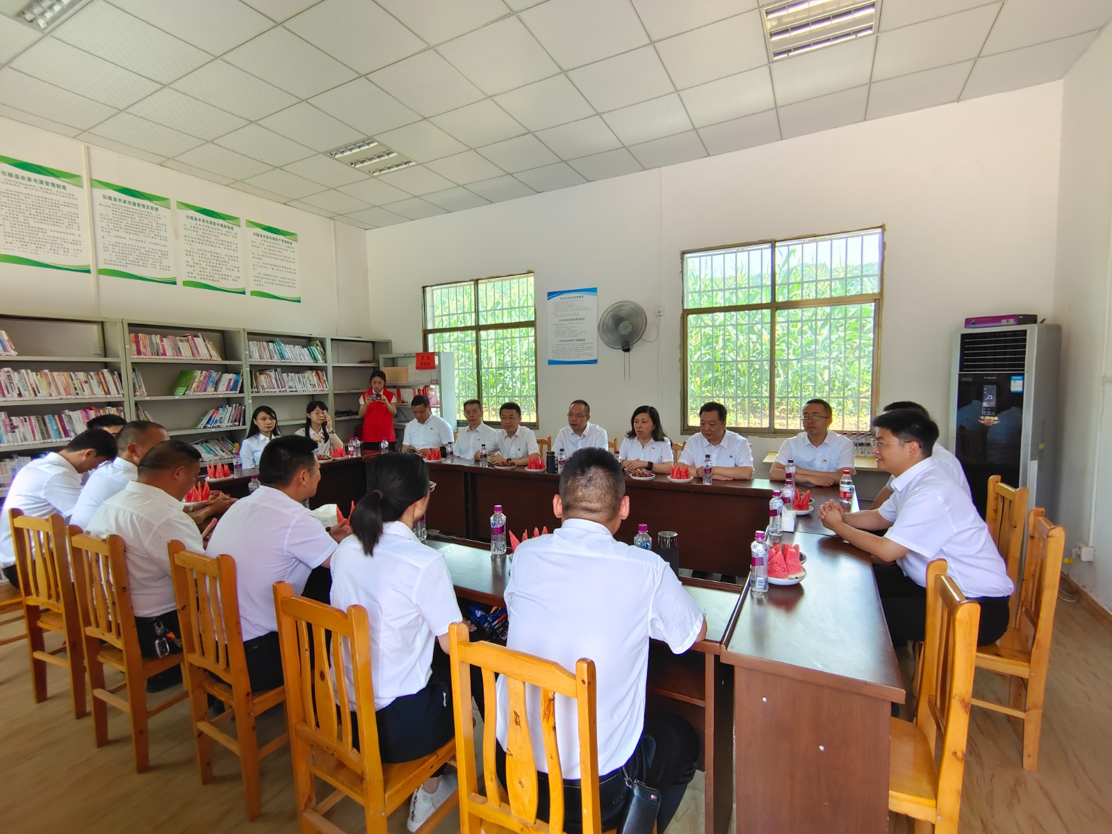 随后,全体党员驱车前往帮扶地永光镇龙头村开展联建共建活动,双方党支部围绕支部中心内容进行了座谈交流。龙头村党总支书记胡珺就本村产业发展、党员管理、基层治理等内容进行介绍,川投国际党支部书记廖彬围绕公司发展历程、党建特色亮点等内容进行介绍,并指出,托底性帮扶是一项重大政治任务,更是践行国企担当和社会责任的重要体现,希望在集团党委与仪陇县委的共同领导下,通过结对帮扶与联建共建加强交流合作,共同书写企地合作新篇章。会后,廖彬走访慰问了村中的老党员及困难党员,并送上夏季消暑慰问品。