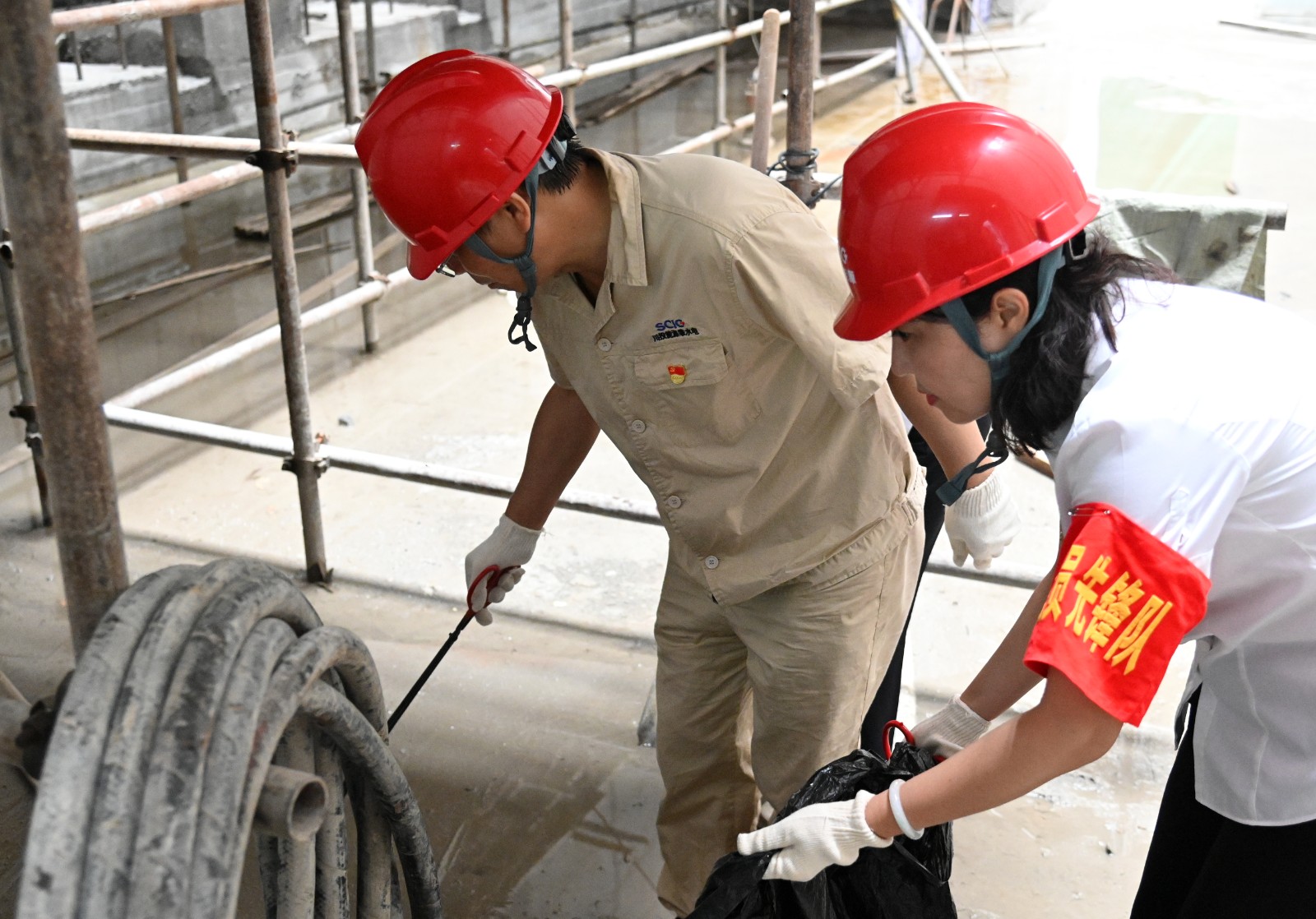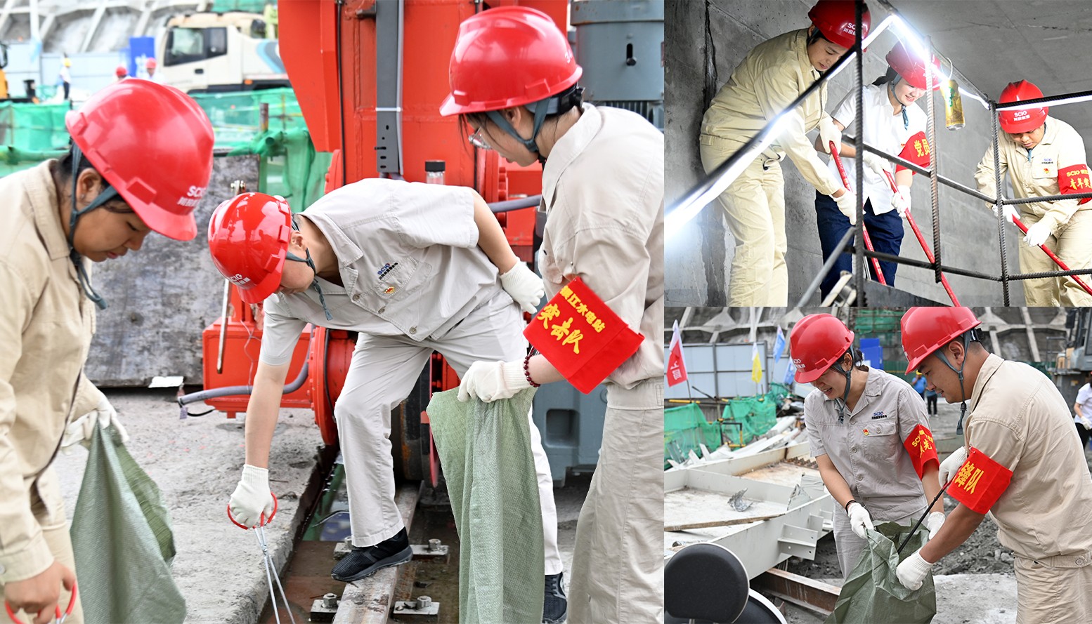 大家来到银江水电站坝顶施工通道,对现场吊装点及各施工作业面卫生清洁区域进行了清扫分工,各支部党员同志冲锋在前,主动带领其他党员同志、志愿者对银江水电站坝顶、坝顶至安装间通道、安装间、副厂房等区域进行了卫生清扫、垃圾清运,并协调了临时堆放物资、安装构建的整理吊装等,为后期转子支架到达现场营造了整洁、便捷的环境。