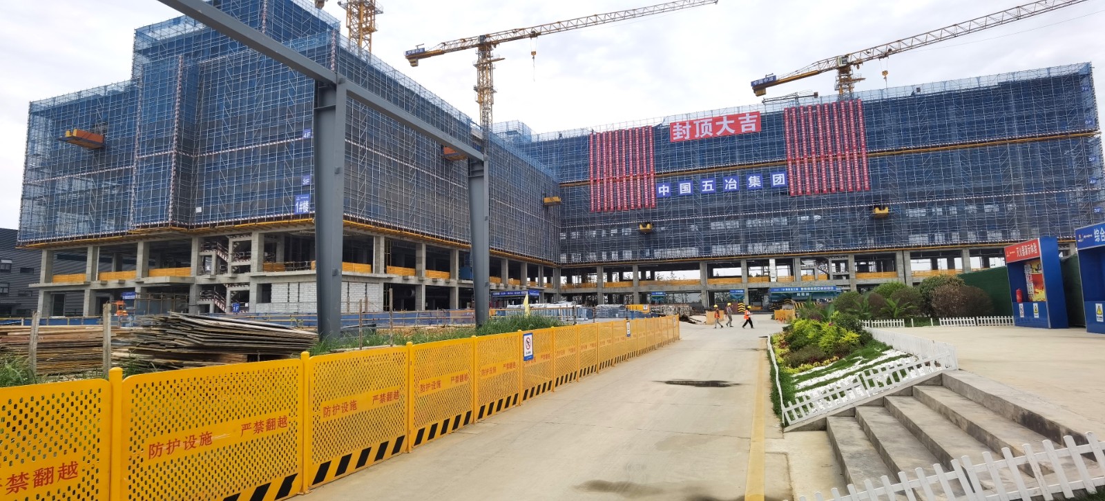 面对诸多复杂施工难点,项目团队实时梳理进度,不断优化施工方案,科学组织安排流水作业,在严把安全生产关的同时加快施工进度。建设期间,项目团队先后克服了黄色预警天气管控超30天、配合成都地铁18号线建设停电8天、夏季有机废气VOCs管控等诸多影响因素,在一号楼整体提前冲出“正负零”的基础上,提前实现项目一号楼主体结构封顶的重要节点目标。