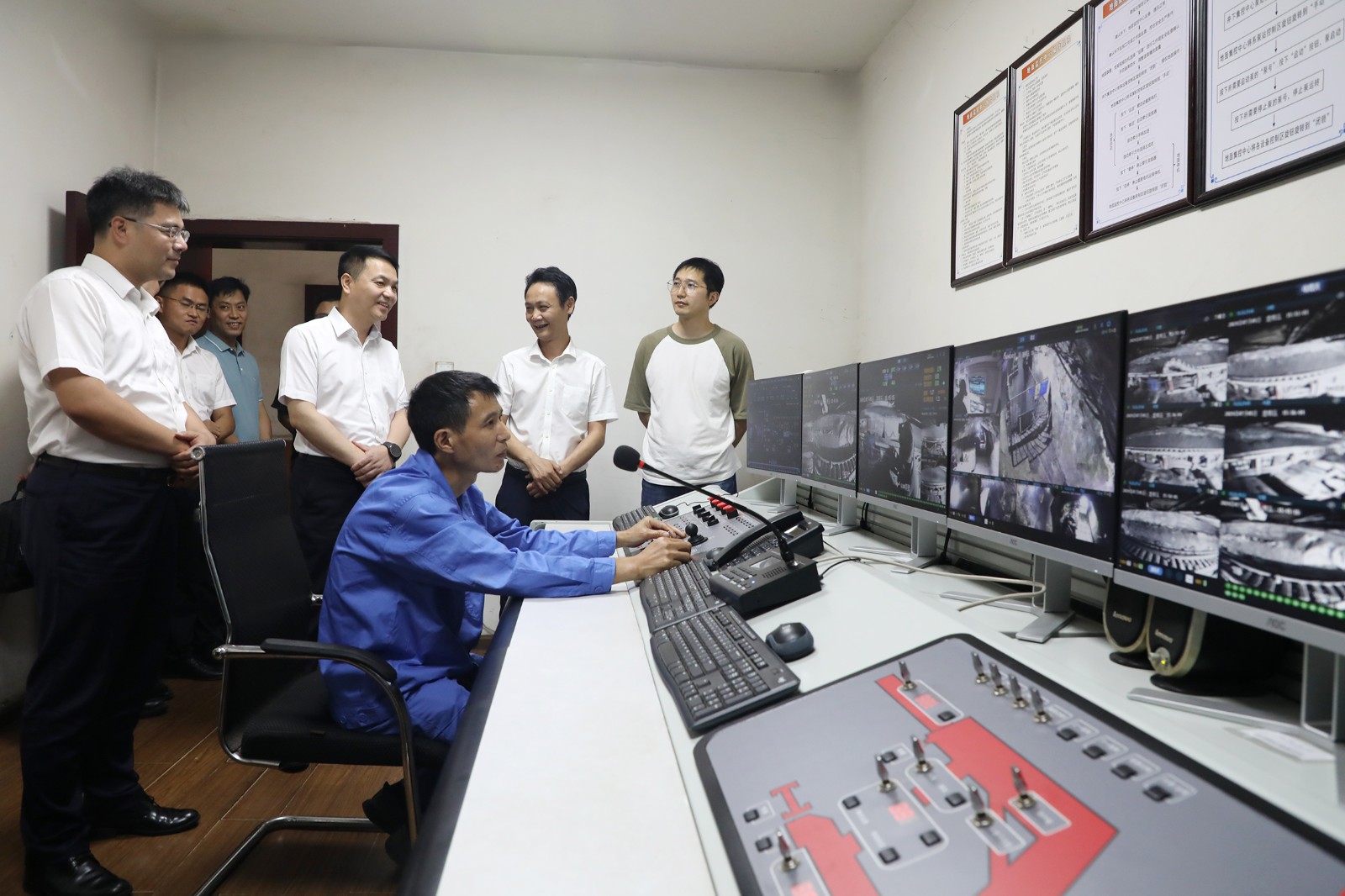 党委副书记、总经理范勤英陪同天玛智控公司党委书记、董事长刘治国一行实地考察了嘉阳煤矿采煤二队智能化综采地面远程操控室和调度中心,详细了解薄煤层数字化和智能化建设进展。