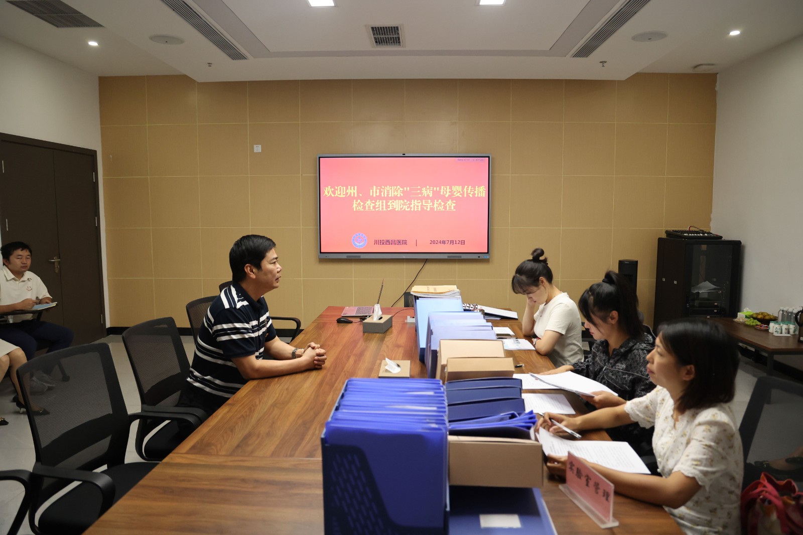 为进一步规范川投西昌医院消除艾滋病等重大传染病防治攻坚工作,推进消除艾滋病、梅毒、乙肝母婴传播工作进程,促进妇女儿童健康,7月12日上午,西昌市消除“三病”母婴传播工作组到川投西昌医院督导检查。