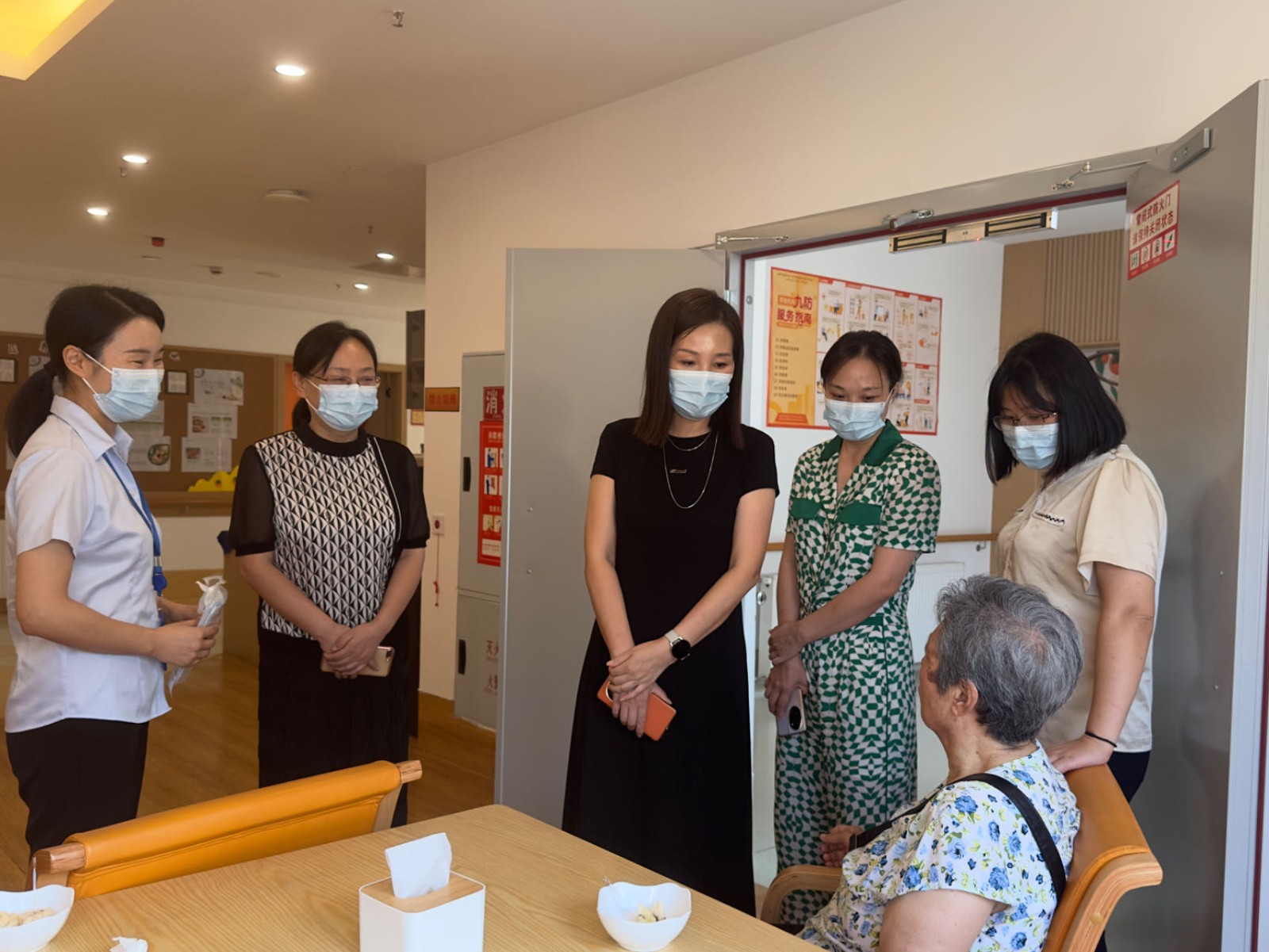 陆曹蓉一行实地察看了颐康养护院内外环境、功能设施,听取了项目负责人对颐康养护院运营管理、服务质量等方面的介绍,并与院内长者亲切交谈,详细了解了长者日常生活及护理服务情况。