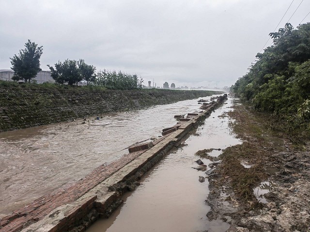 7月18日凌晨约00:20,公司节材二厂南面相邻九里河上游突发聚集性洪水。因九里河过水能力不足,洪水从上游漫出九里河堤,汇集到流经二厂区厂门处的堰渠,形成强大冲击力冲毁围墙和大门,灌入二厂区,并向四周冲击前行,损害厂区全部区域。