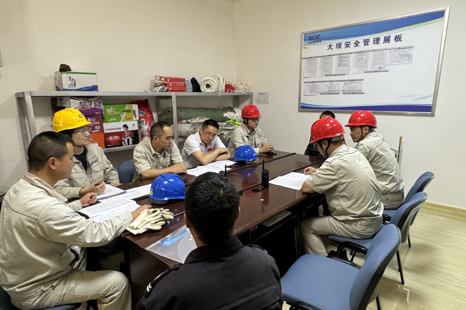 受强降水天气影响,仁宗海水库正高水位运行,且入库流量上升趋势明显,为确保泄洪闸动水启闭试验成功,在试验启动前,公司组织技术人员编写了详细的试验方案,并组织参与人员集中学习,对试验过程中注意事项进行再次提醒和强调,确保所有人熟知试验流程和试验过程中出现突发事件的应急处置。