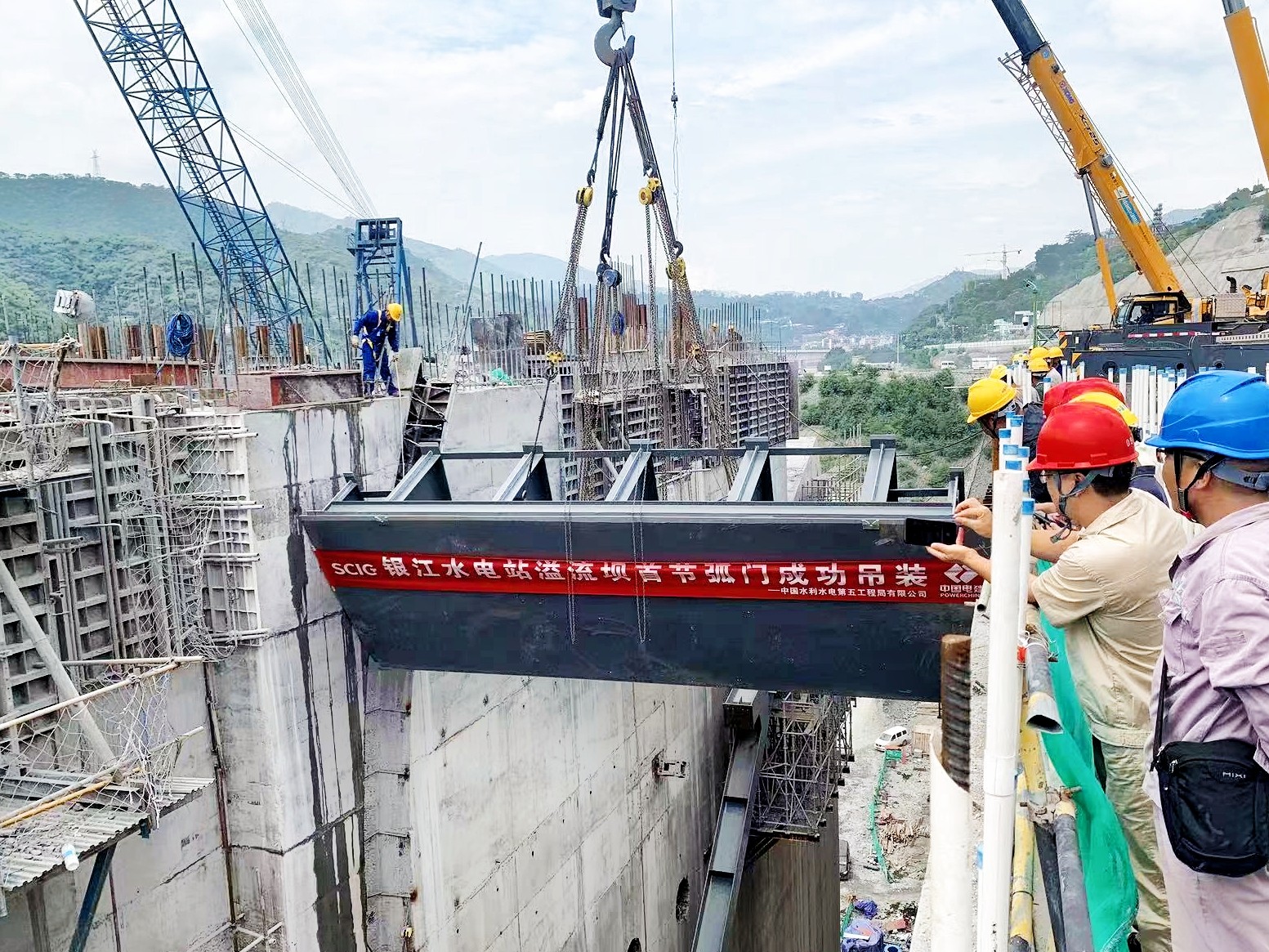 7月22日,正值银江水电站开工建设五周年之际,工程建设再传捷报,首节弧形工作门吊装成功,标志着银江水电站闸门安装高峰期正式拉开序幕。