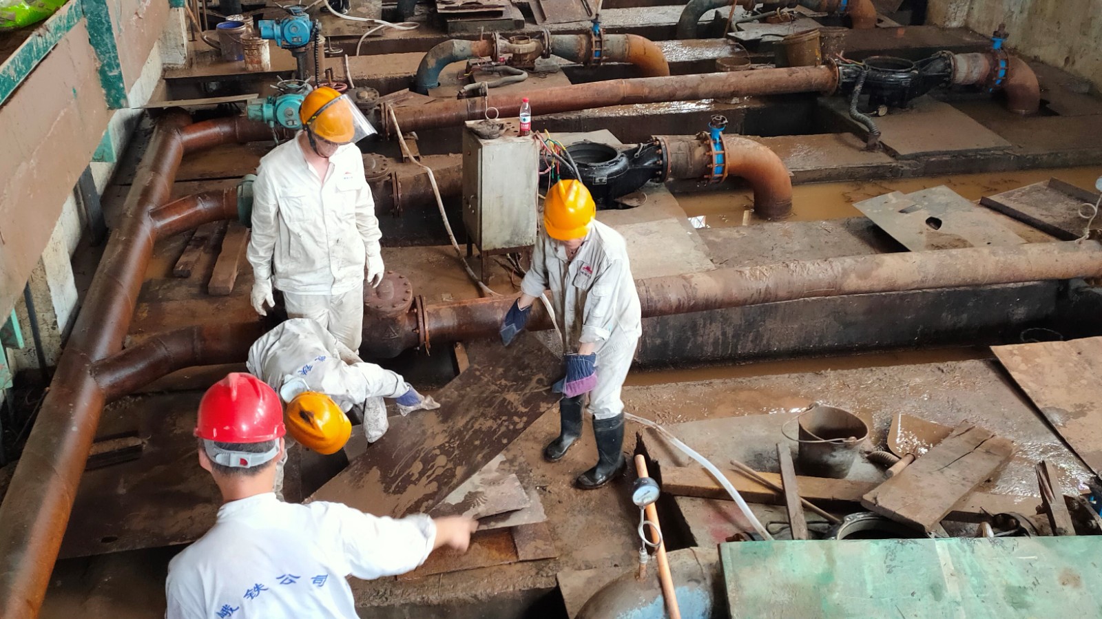 强化查灾报灾和防范应对工作。面对洪水过后带来的满目疮痍,川投峨铁公司立即组织力量开展查灾核灾、查险排险等工作,对二厂区所有建构筑物进行了全覆盖检查,就安全性进行评判并拿出具体意见和工作措施。积极应对近期高温暴雨等极端天气预警,动员全体干部职工提高警惕、克服麻痹思想、发扬峨铁精神,把抢险救灾复产作为当前第一任务,全力抓好抓实。