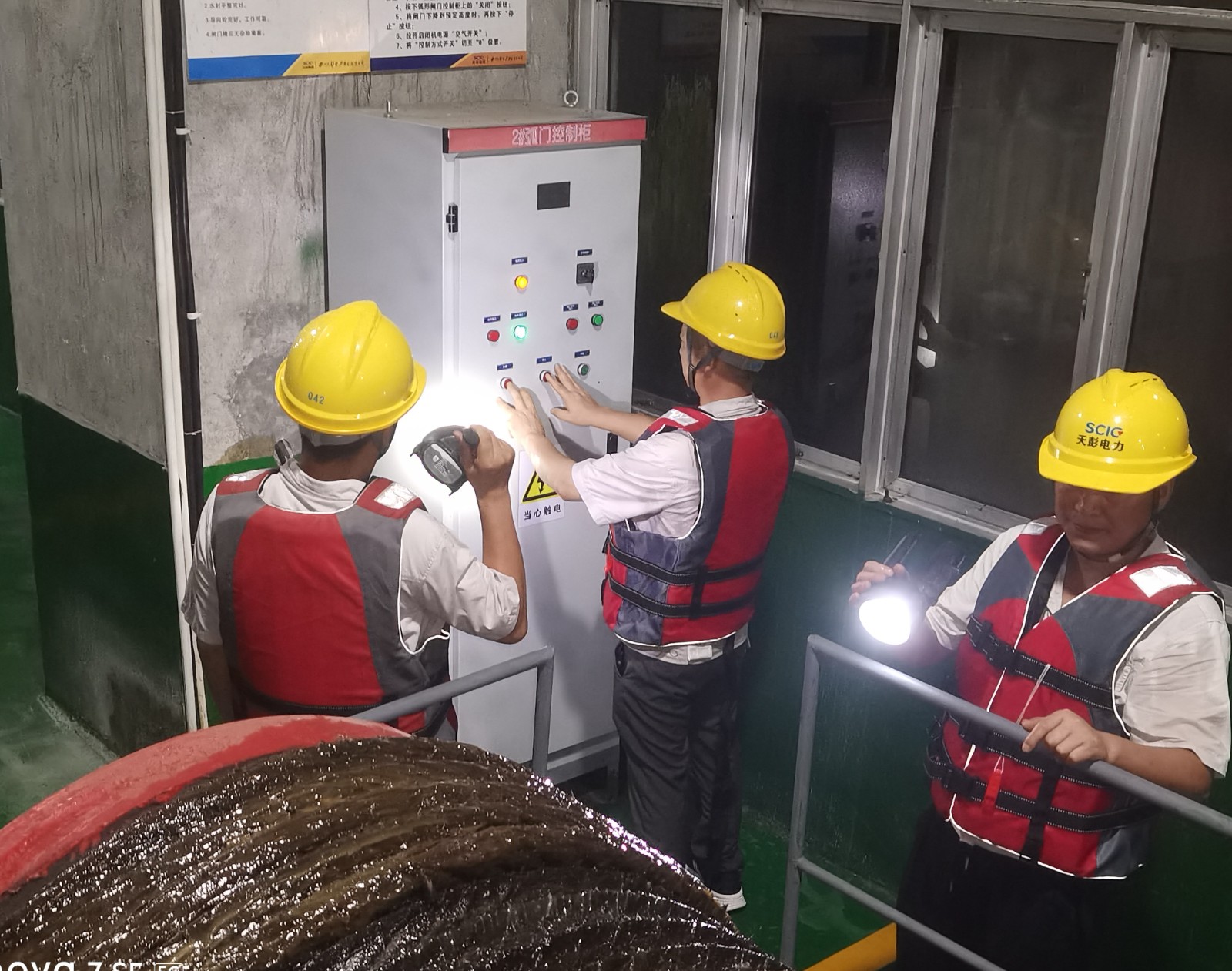 汛情就是命令,防汛就是责任,对于天彭电力人来说,这注定是个不眠之夜。公司领导现场指挥,及时处置各类突发情况,值班人员兵分三路、各司其职,一路驻守控制室,密切关注雨情、水情变化,做好信息收集和传达;一路前往防汛重点部位进行巡视检查,确保设备设施运行正常;一路做好应急抢险准备。