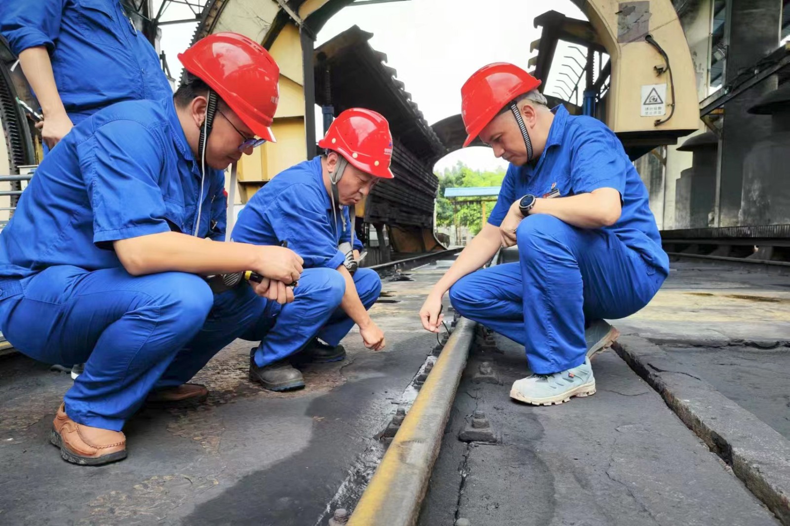在查看储煤场斗轮机后,陈嵩强调:今年以来,机组接带负荷高,输煤系统长期处于高负荷运转状态,相关部门要持续抓好设备运行中检查,及早发现问题,及时处理,不让小问题发展成大状况;要坚持开展每月输煤皮带评估,前瞻性做好备品备件储备;近期连续高温,要做好室外作业人员防中暑工作,配齐预防中暑药品,错时错峰作业;皮带、地面、配电盘柜、除尘器等区域的积煤积粉清扫工作要落实到位,防控火灾风险;针对翻车机、斗轮机轨道地脚螺栓锈蚀等难点问题,要提早拟定工作方案,择机进行处理;要高度重视平台、楼梯因锈蚀带来的踏空伤人风险,计划性进行更换。要全方位发力,切实做好输煤系统运行维护工作,确保迎峰度夏期间公司机组发电需要。