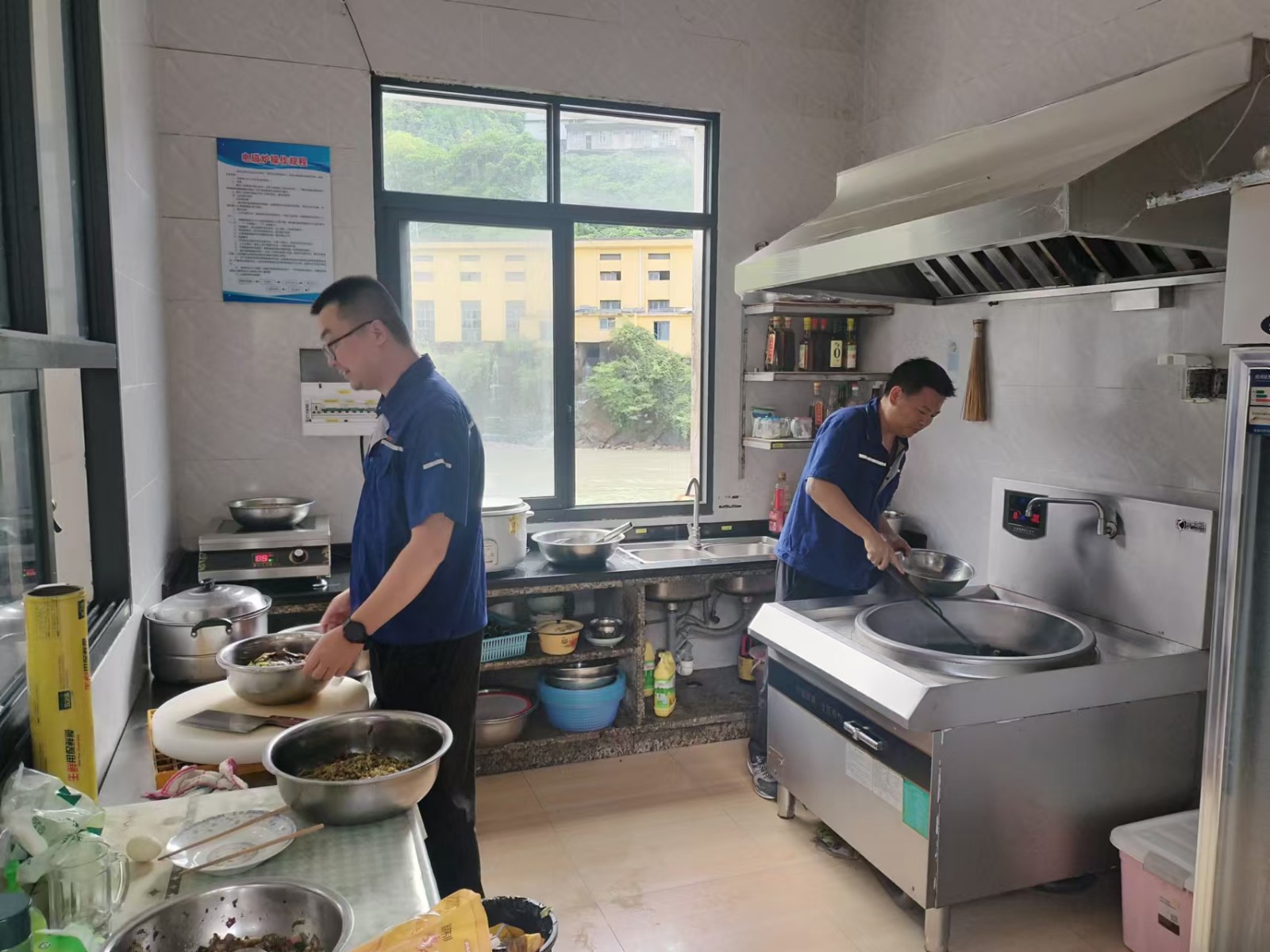 由于道路中断,食堂工作人员无法抵达电厂,解决值班人员的三餐成了难题。于是,在厂员工就自己动手,充分利用有限的时间和食材,相互协同,在厨房烹饪出美味可口的饭菜,既解决了温饱,更温暖了人心。这期间,电厂周边的企地共建企业和政府单位也给予了关心、帮助和支持。