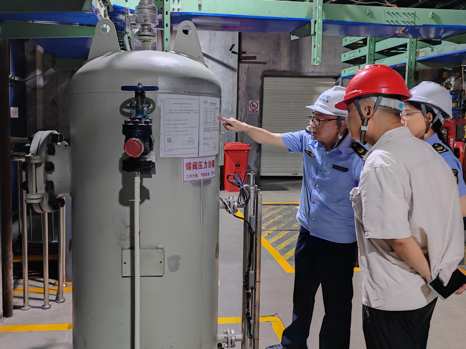 在公司职工食堂,检查组逐一检查了食堂操作间环境、炊具及餐具卫生状况,了解工作餐加工制作流程,重点对食堂管理制度建设及菜品的质量安全把控情况进行了检查。在凤鸣桥车间生产一线,检查组认真听取关于公司基本情况、安全管理体系建设、特种设备安全操作规程完善、特种设备管理员、操作人员教育培训、特种设备隐患排查治理长效机制等方面的情况汇报,现场查看桥式起重机、压力容器等特种设备的运行情况,翻阅了特种设备检查记录、定检校验台账等工作资料。