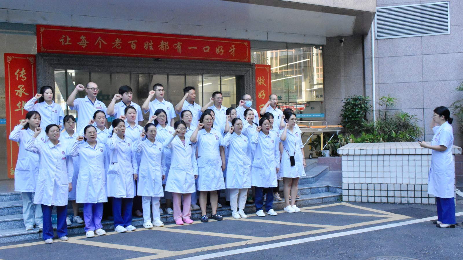 活动伊始,四川口腔医院院长助理、牙周科主任聂晶代表医院向全体医务人员致以崇高的敬意和节日的问候,对所有医务人员辛勤的付出和孜孜不倦的坚守致以衷心的感谢。随后,在聂晶主任的带领下全体医务人员进行了庄严宣誓,在铿锵有力的宣誓声中,医师们再次坚定了“不忘初心,医路同行”的信念。