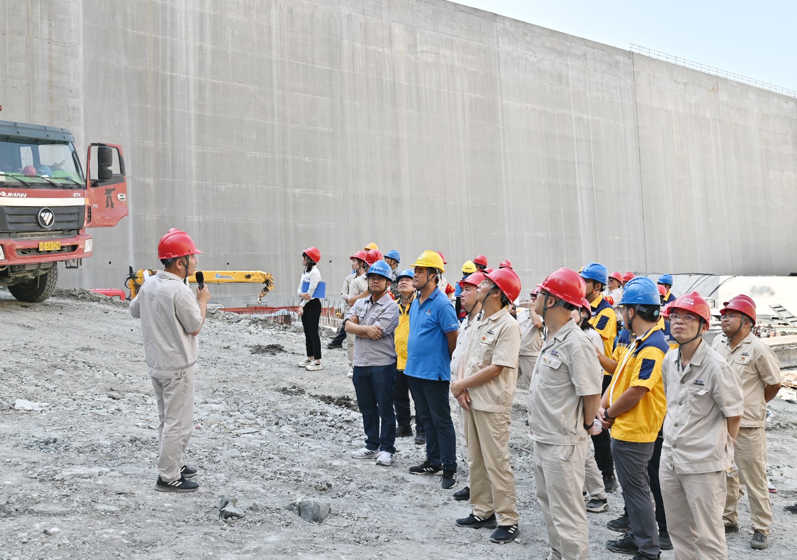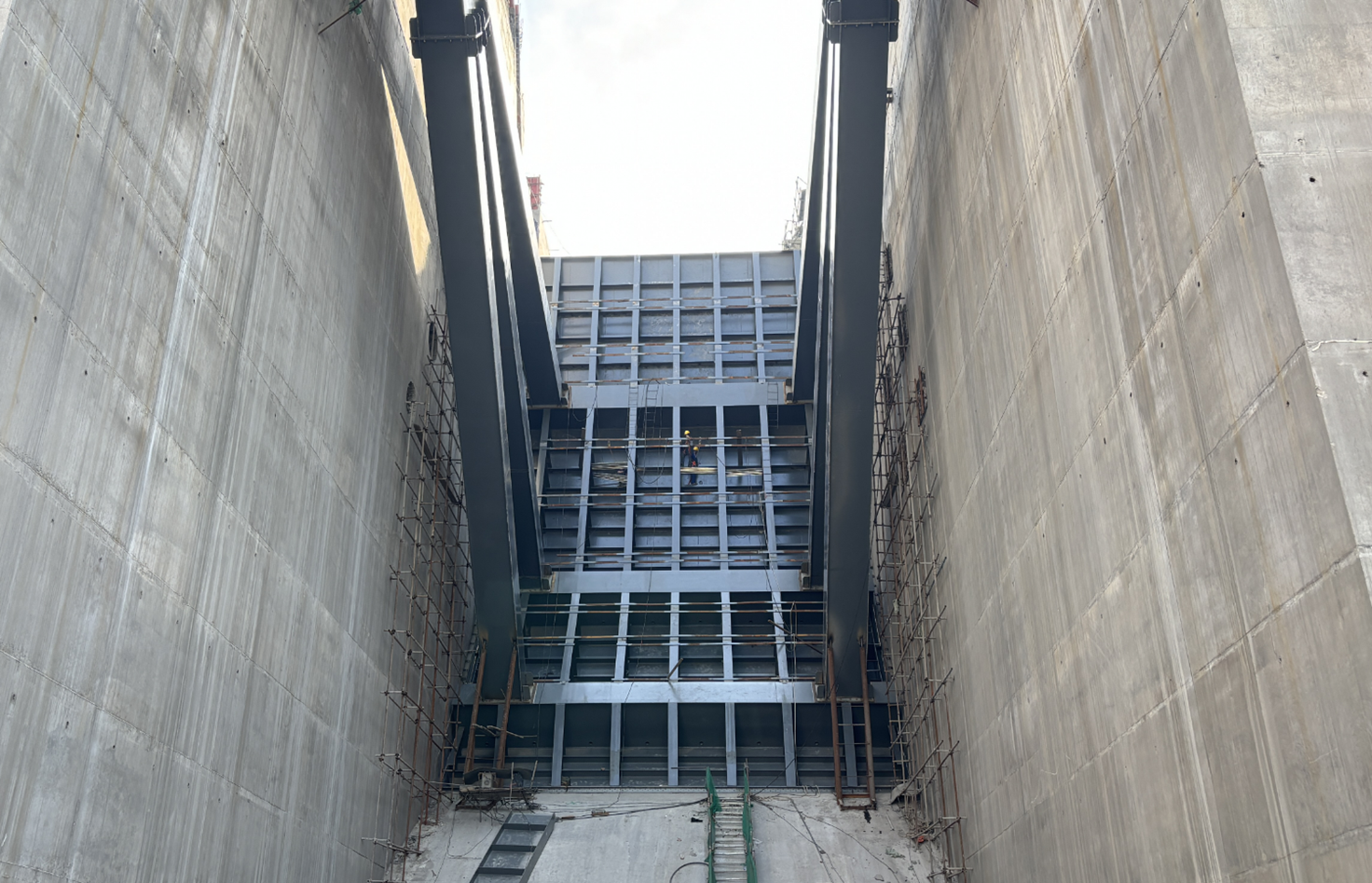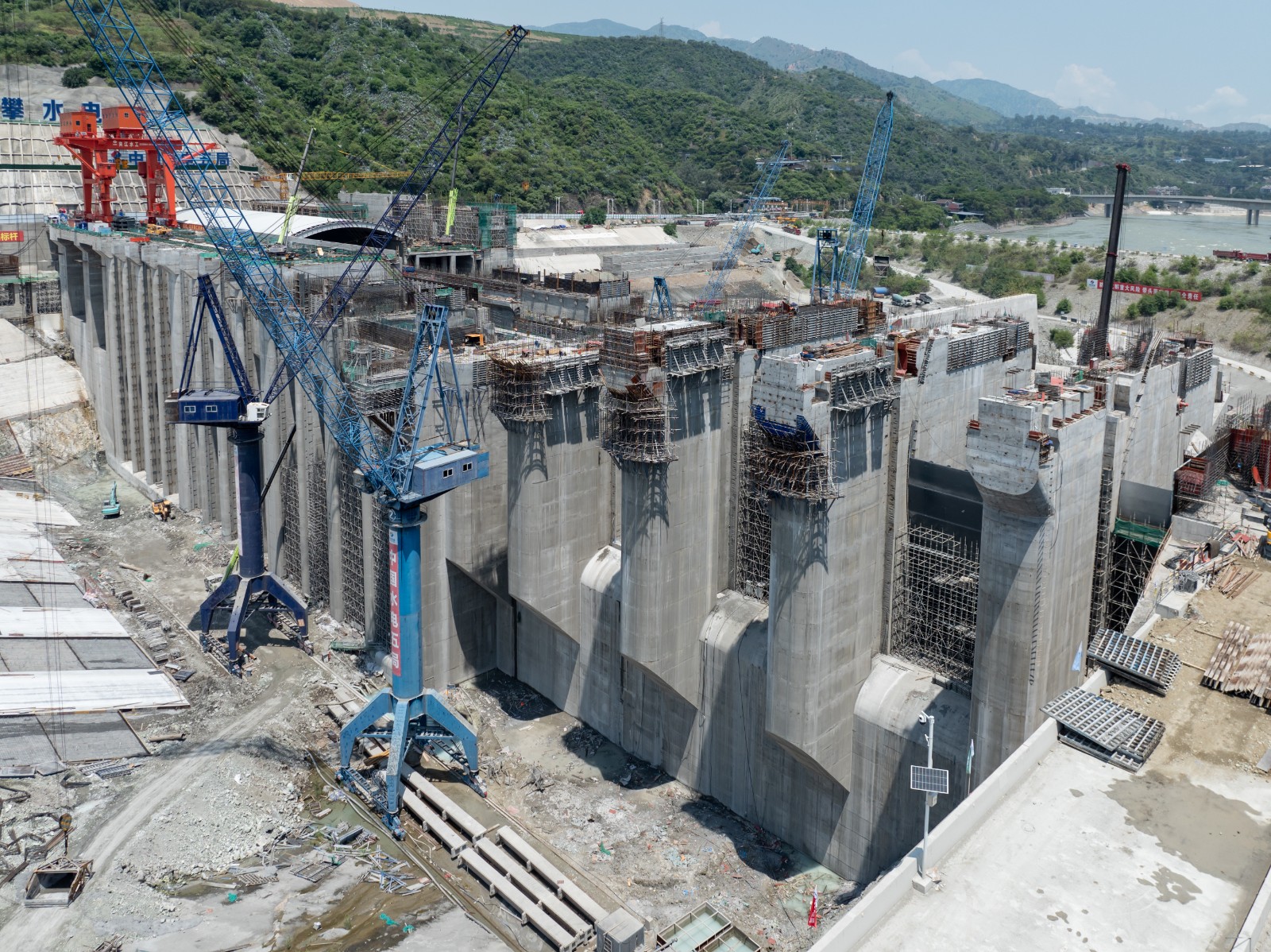 徐孝刚表示,金属结构安装是实现工程下闸蓄水目标的核心任务,自7月下旬首节弧形工作门吊装以来,在不到3个月的时间内,将要完成近万吨的安装工程量,工期紧、任务重、难度大,参建各方超前谋划、提前部署,深入开展设计及施工优化,多次专题研讨安装方案并组织专家论证,突破多项常规方法,采取钢绞线提升装置安装尾水事故检修门、临时平台配合汽车吊站位安装弧形工作门、门槽安装及其二期混凝土浇筑工序循环优化等一系列超常规措施,大幅缩短了安装工期,取得了阶段性成果,希望各参建单位持续保持昂扬斗志、乘势而上,协同并进、合力攻坚,为全面实现工程建设目标不懈奋斗。