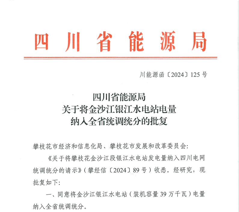 在统调统分手续的办理过程中,公司主要领导多次带队到省能源局、攀枝花市发改委、经信局等政府部门、川投能源公司及相关部门积极协调、汇报,工作小组时刻跟进请示文件在各部门的处理情况。在上级单位部门的大力支持下,银江水电站成功取得了四川省能源局将金沙江银江水电站电量纳入全省统调统分的批复。