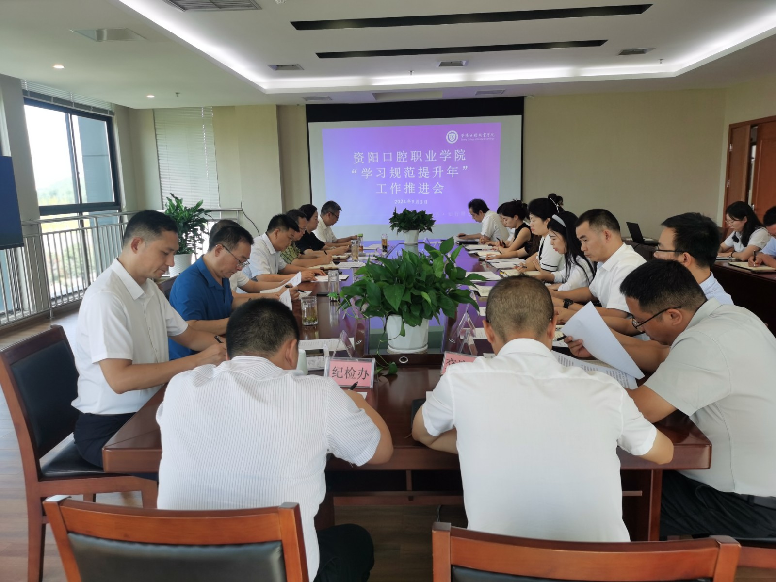 9月3日,资阳口腔职业学院召开“学习规范提升年”活动工作推进会,学院在家领导班子成员出席,全体中层干部参加会议。