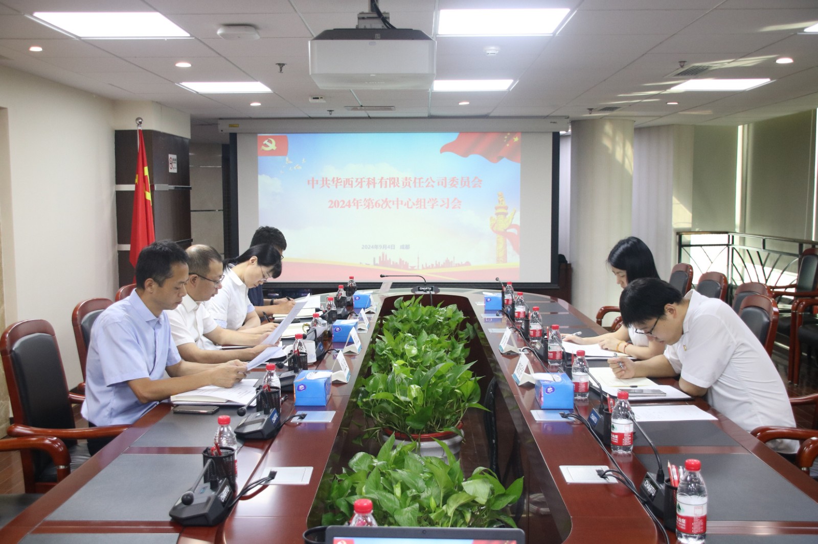 9月4日上午,华西牙科召开第6次党委理论学习中心组学习会,进一步深入学习贯彻党的二十届三中全会精神,并结合实际开展集中研讨。华西牙科党委书记、董事长、总经理刘凌云主持会议并讲话。
