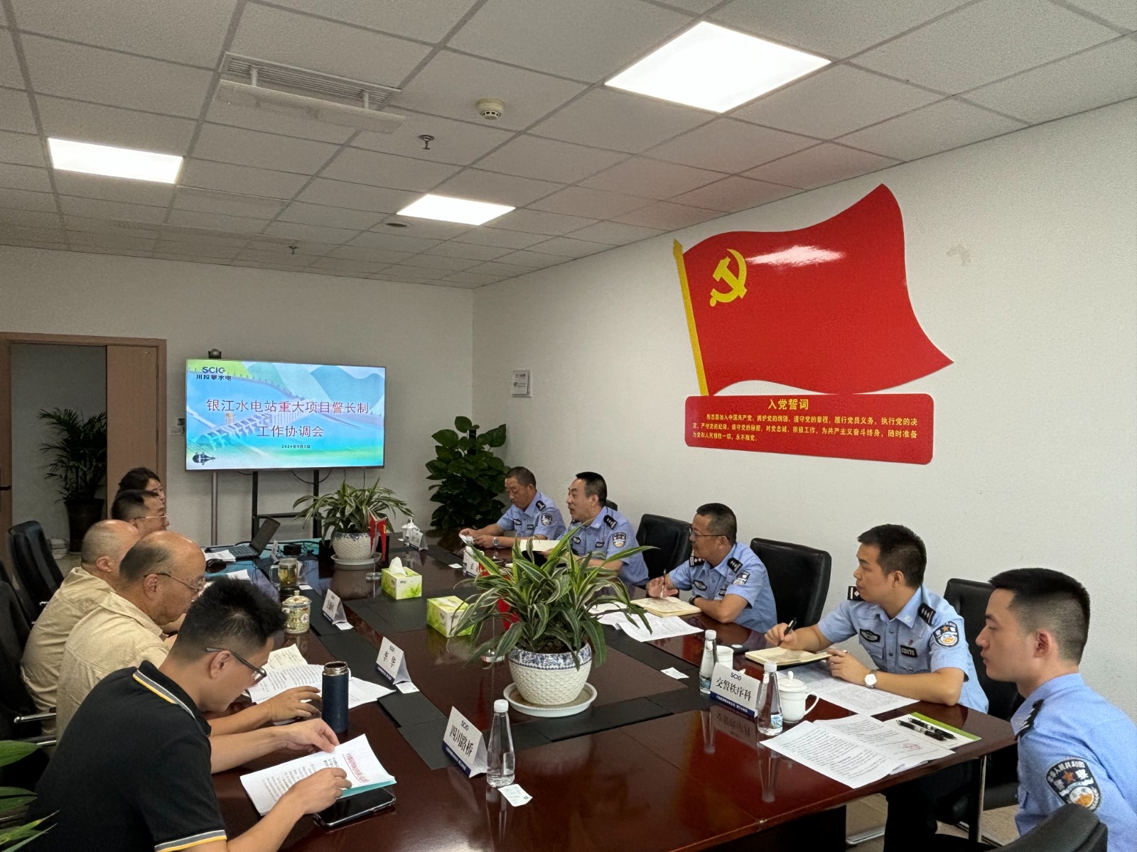 为保障银江水电站重大项目安全顺利推进,护航服务攀枝花市高质量发展建设共同富裕试验区,攀枝花市公安局与川投能源下属攀水电公司建立了银江水电站“重大项目警长制”,近日,市公安局机关党委副书记张征带队赴公司召开工作协调会议。攀水电公司党总支副书记、总经理、联络工作组组长吴巍屿出席会议,交警支队办公室、秩序科、三大队及公司相关部门等10余人参加会议。