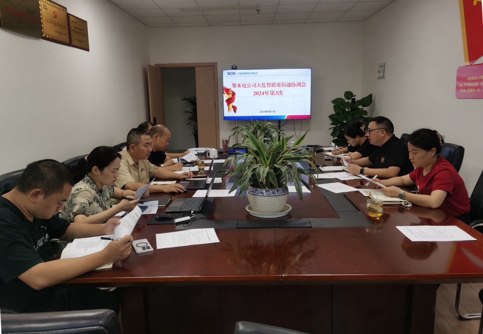 近日,川投能源下属攀水电公司纪检小组组织召开2024年第3次大监督联席沟通协调会,会议由公司党总支委员、纪检小组长杨锐主持,公司中干、部门员工共计12人参加会议。