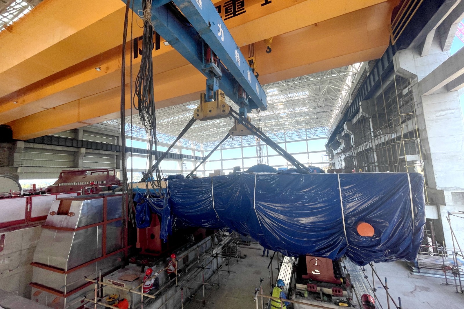 近日,川投泸州天然气发电项目1号机组燃机下缸顺利吊装就位。
