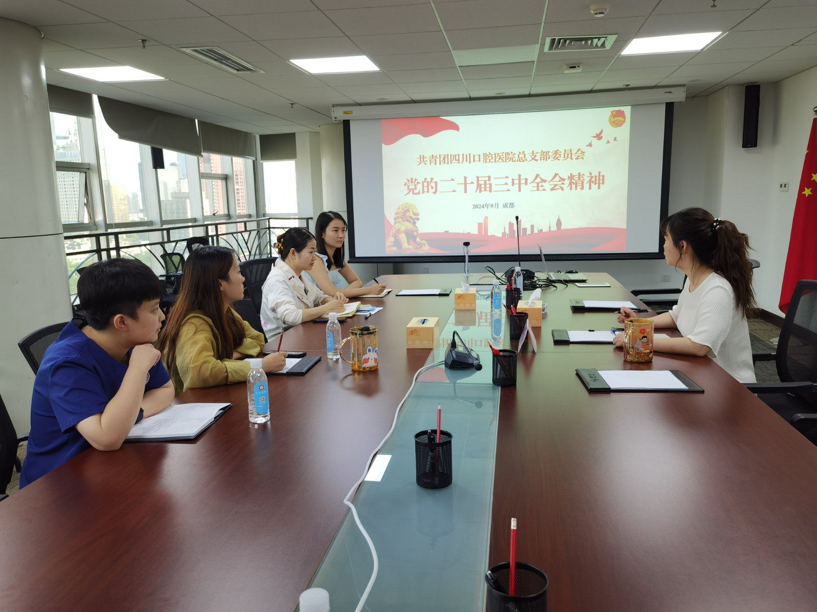9月12日,四川口腔医院团总支召开总支委员会,专题学习党的二十届三中全会精神。会议由四川口腔医院团总支书记蒋薇主持,全体团总支委员参加学习。