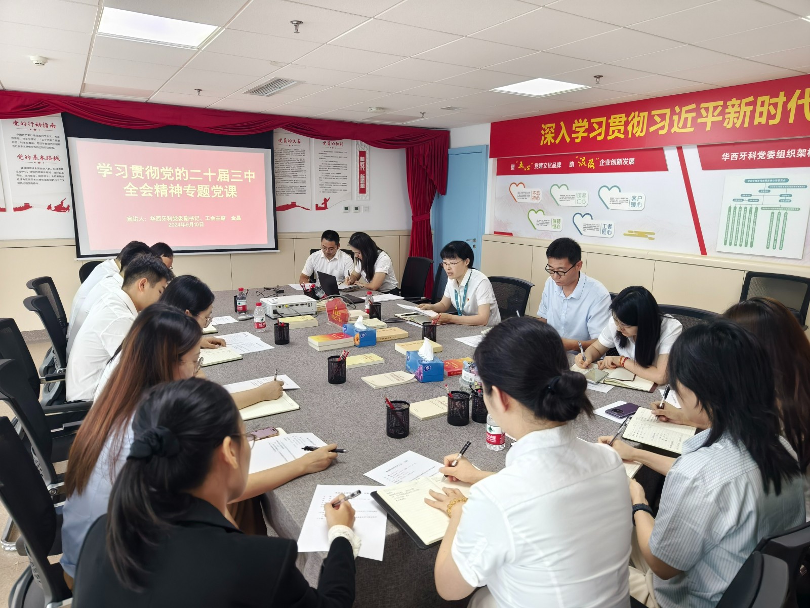 为进一步深入学习贯彻党的二十届三中全会精神,9月10日下午,华西牙科党委副书记、工会主席金晶宣讲学习了贯彻党的二十届三中全会精神并讲授专题党课。
