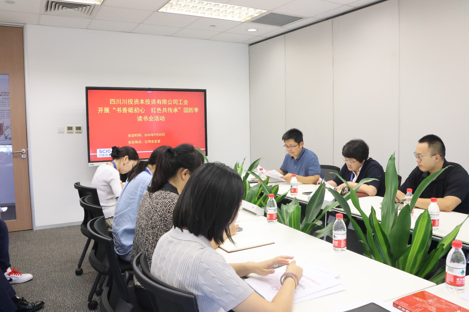 为深入学习贯彻习近平总书记关于加强全民国防教育和法治建设、合规管理的重要指示批示精神,进一步增强干部职工的全民国防观念和法治合规意识,提升全民素养,广泛凝聚干部职工关心国防、热爱国防、建设国防、保卫国防和法治为本、合规于心的思想共识,9月20日下午川投资本组织开展了“书香砥初心 红色共传承”国防季读书会活动。