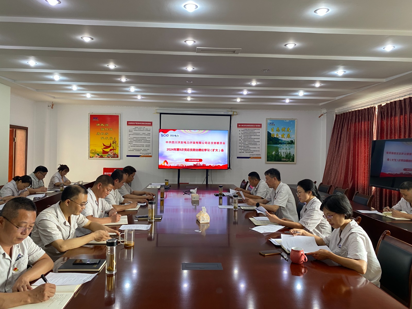 近日,川投能源下属天彭电力党总支召开2024年第9次党总支政治理论学习(扩大)会议,集中学习省委十二届六次全会精神,研究公司贯彻落实举措。公司党总支书记、执行董事、总经理刘红兵主持,领导班子成员、党员、干部、关键岗位人员参加学习。