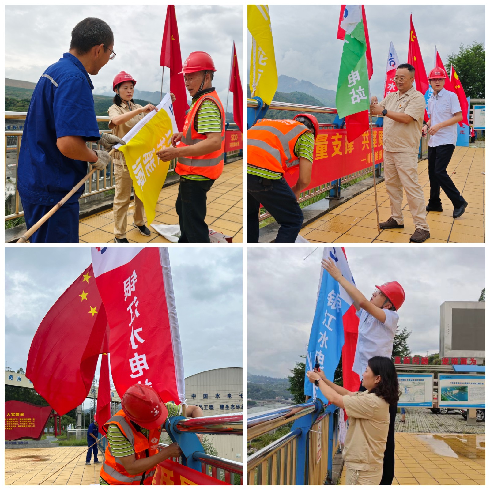 为热烈庆祝中华人民共和国成立75周年,9月30日,川投能源所属攀水电公司一、二支部及联建支部30余名党员共同开展“装点银江、喜迎国庆”暨安全文明施工再提升主题党日活动,用国旗、彩旗装点工地,用辛勤劳动抒发热忱,将国庆的氛围感拉满,以各种形式迎接国庆节的到来。