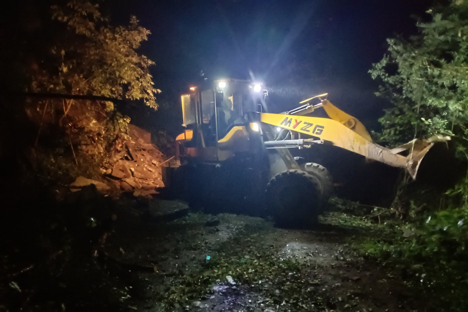 在公司的精心组织下,救援行动有条不紊,高效推进。驷马塘水文站内,工作人员为滞留游客添加热水,端上热气腾腾的面条,大家围坐在电炉旁取暖,有说有笑,刚才的担忧恐惧早已烟消云散。道路中断点,机器轰鸣,灯火阑珊,在指挥人员的引导下,作业人员正熟练地操控着机械设备,有条不紊对道路堆积物进行清理,道路一点点被打通。
