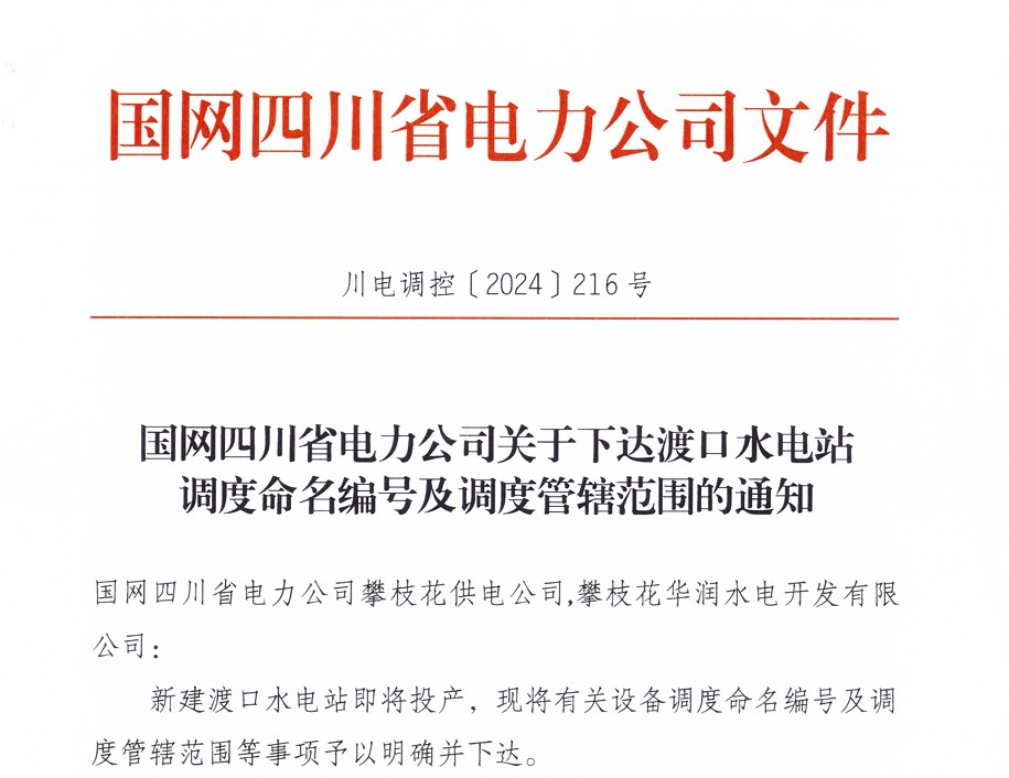 银江水电站投产发电在即,因“银江”二字已被银江变电站占用,川投能源所属攀水电公司动员全体员工集思广益,挑选符合规定又有寓意的调度名。10月8日,在国网四川省电力公司和川投能源的指导帮助下,经过积极对接、多方协调,攀水电公司成功取得国网四川省电力公司对银江水电站和送出线路的调度命名,银江水电站的调度名为“渡口水电站”,银江水电站220kV送出线路调度名为“220kV渡银线”。