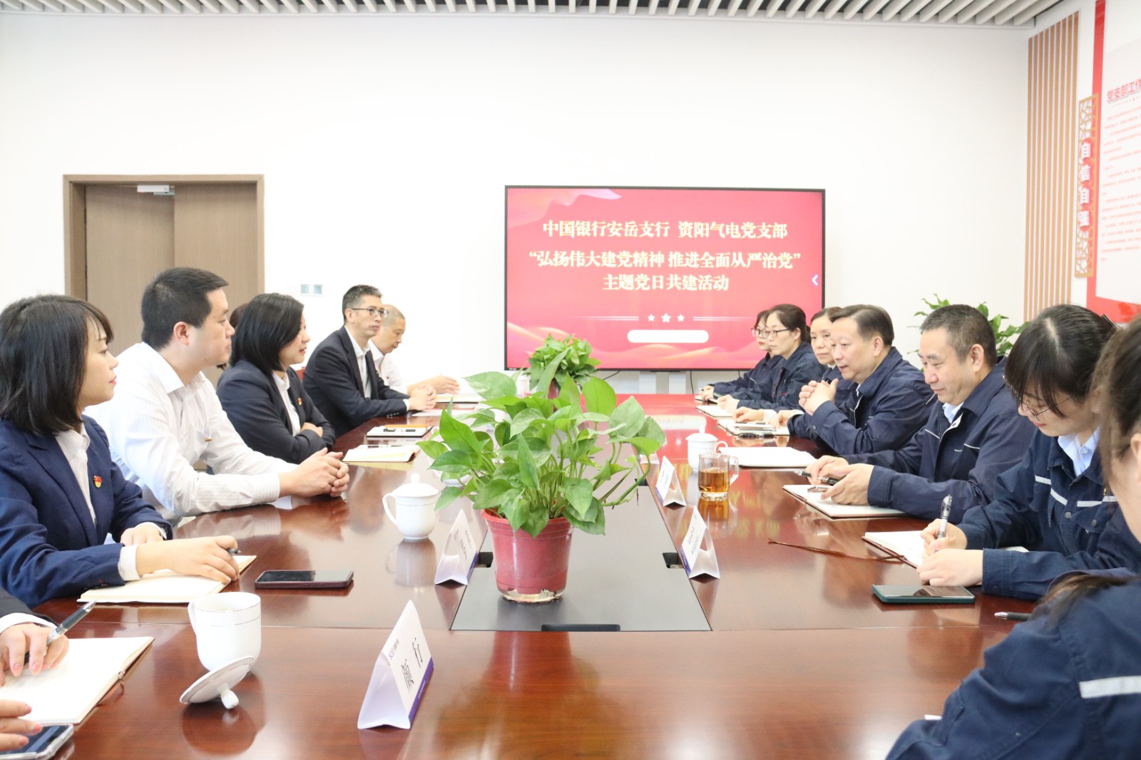10月16日,中国银行安岳支行党总支和资阳气电党支部联合开展“弘扬伟大建党精神 推进全面从严治党”主题党日活动。中国银行安岳支行党总支书记、行长马晓丽,资阳气电党支部书记、执行董事、总经理梁红兵参加活动。