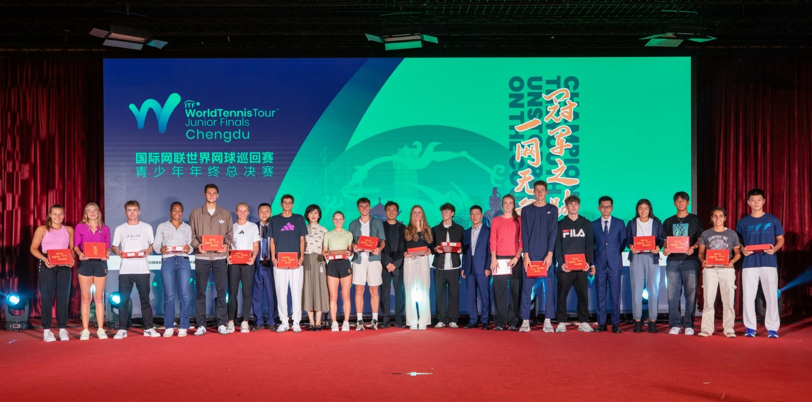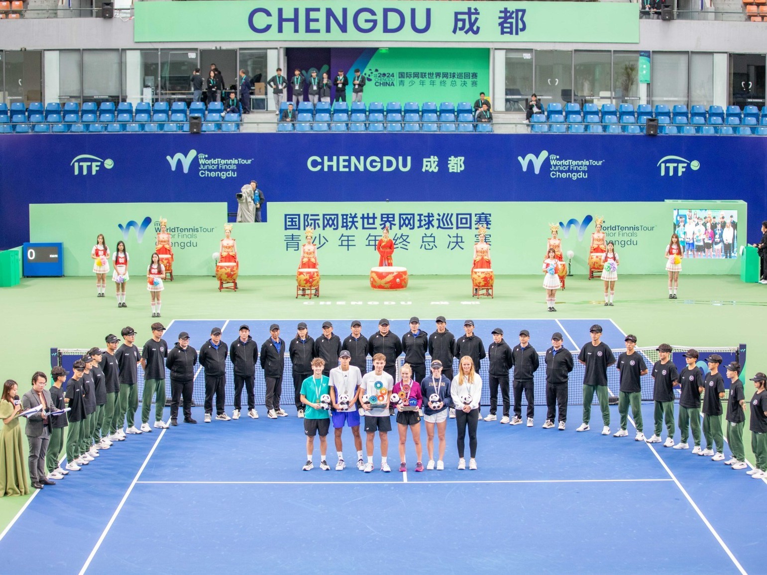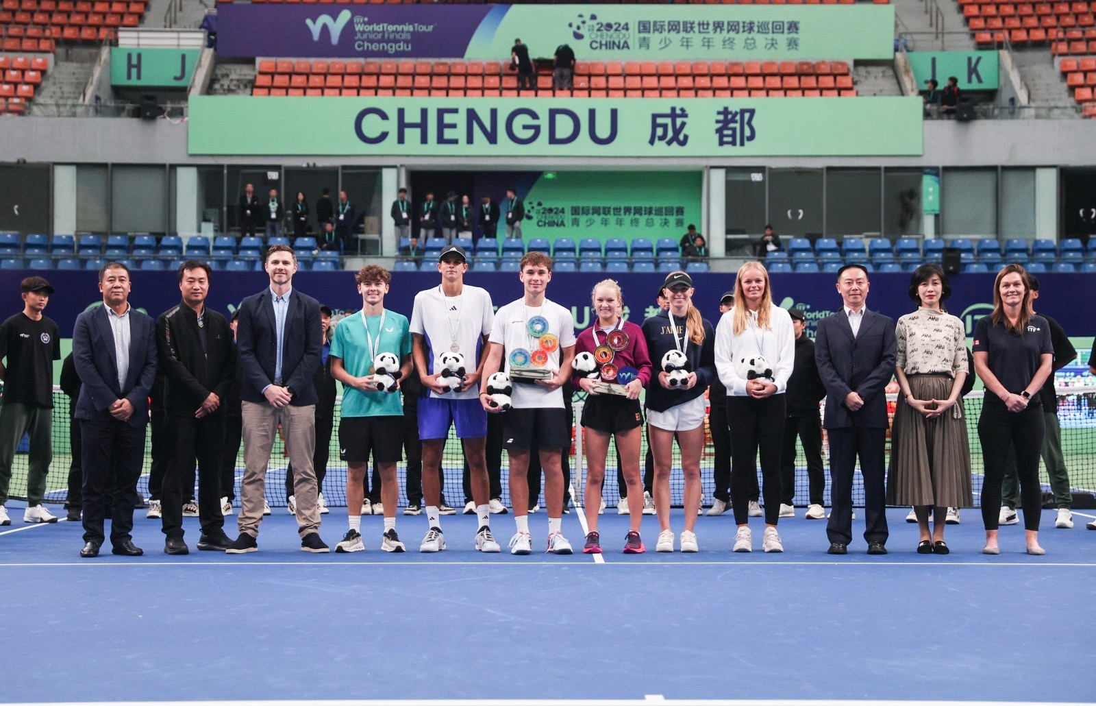 10月20日,2024国际网联世界网球巡回赛青少年年终总决赛在川投国网公司中心赛场精彩上演,至此,为期五天的比赛圆满收官。国际网联青少年赛事负责人马特·拜福德,国际网联青少年委员会委员、中国网球协会副秘书长周文学,成都市体育局机关党委书记杨慎微,成都市双流区文化广电体育和旅游局副局长柯亮,川投国网公司党委书记、执行董事白蕾,国际网联青少年赛事高级经理凯瑟琳·米奇等嘉宾出席颁奖仪式。