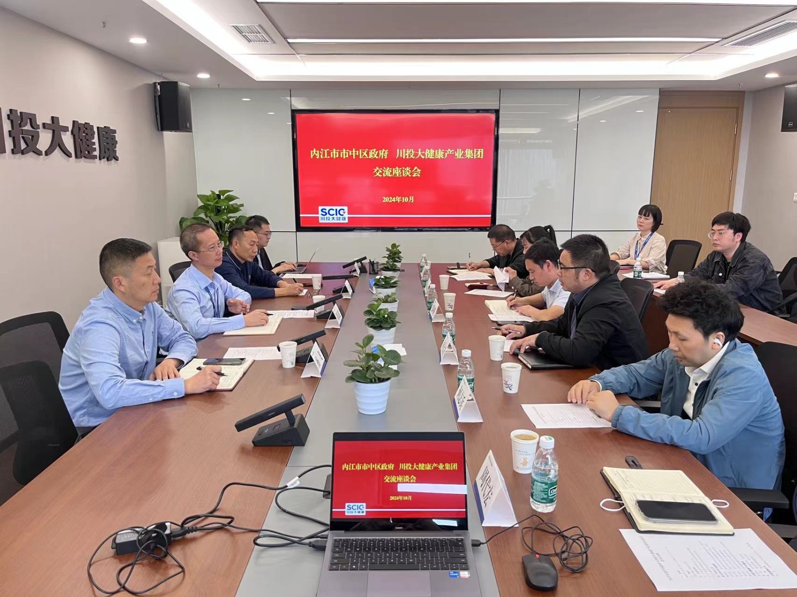 10月18日,内江市市中区人民政府党组成员、副区长邹河旺带队来访川投大健康,就养老项目合作进行调研。川投大健康党委副书记、总经理周家超,副总经理、财务总监姜涛参与座谈交流。