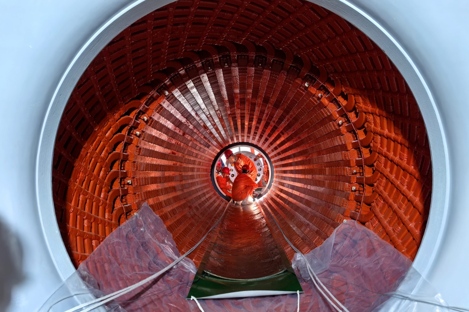 项目的机组发电机转子全长14米,重约88吨。在发电机安装过程中,转子的穿装是至关重要的环节。为确保首次穿转子工作的顺利进行,各参建单位提前筹备,多次召开专题会,详细梳理每一个技术细节,确保穿装方案的细致周密。