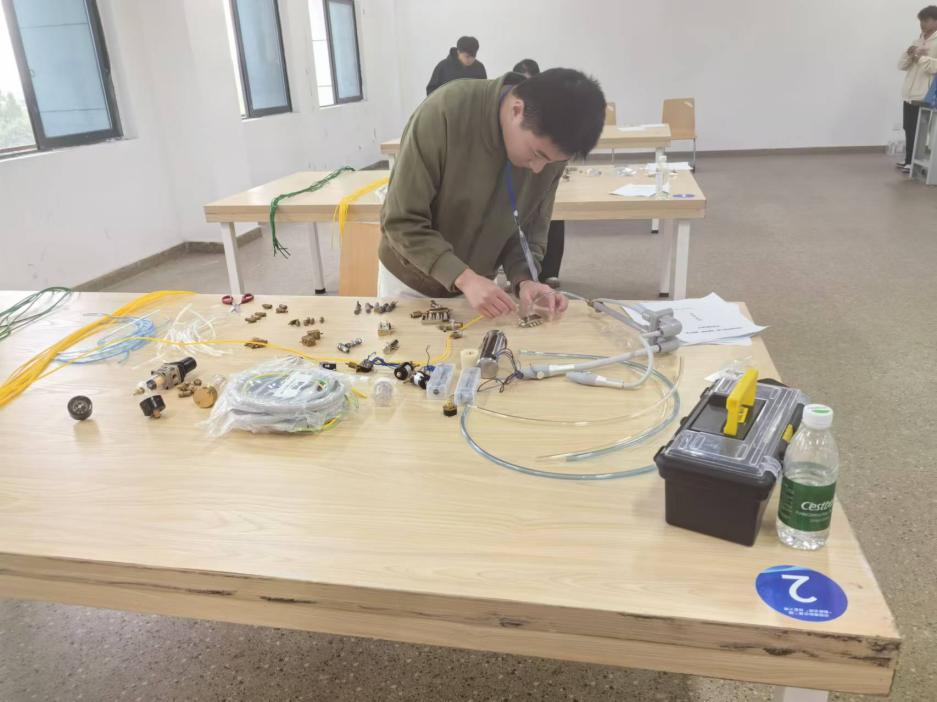 大赛设焊工、电工、钳工、叉车工、汽车维修工、新能源汽车智能化、CAD制图技术、牙科装备、快递员等9个项目,资阳口腔职业学院作为赛事承办点之一,承担其中牙科装备及CAD制图两个项目的比赛。赛场上,选手们围绕牙科综合治疗机水气管路连接技能展开比拼,按要求画出动作原理图,同时将理论融入实践,模拟牙科综合治疗机临床动作。