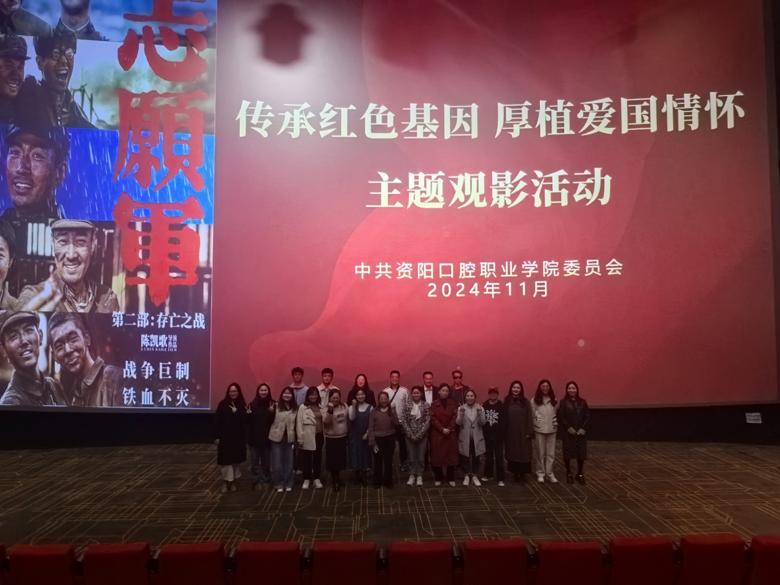 11月8日,资阳口腔职业学院开展“传承红色基因,厚植爱国情怀”主题观影活动,组织教职工观看爱国主义影片《志愿军2:存亡之战》,进一步引导教职工铭记历史、缅怀先烈,增强爱国主义情怀。