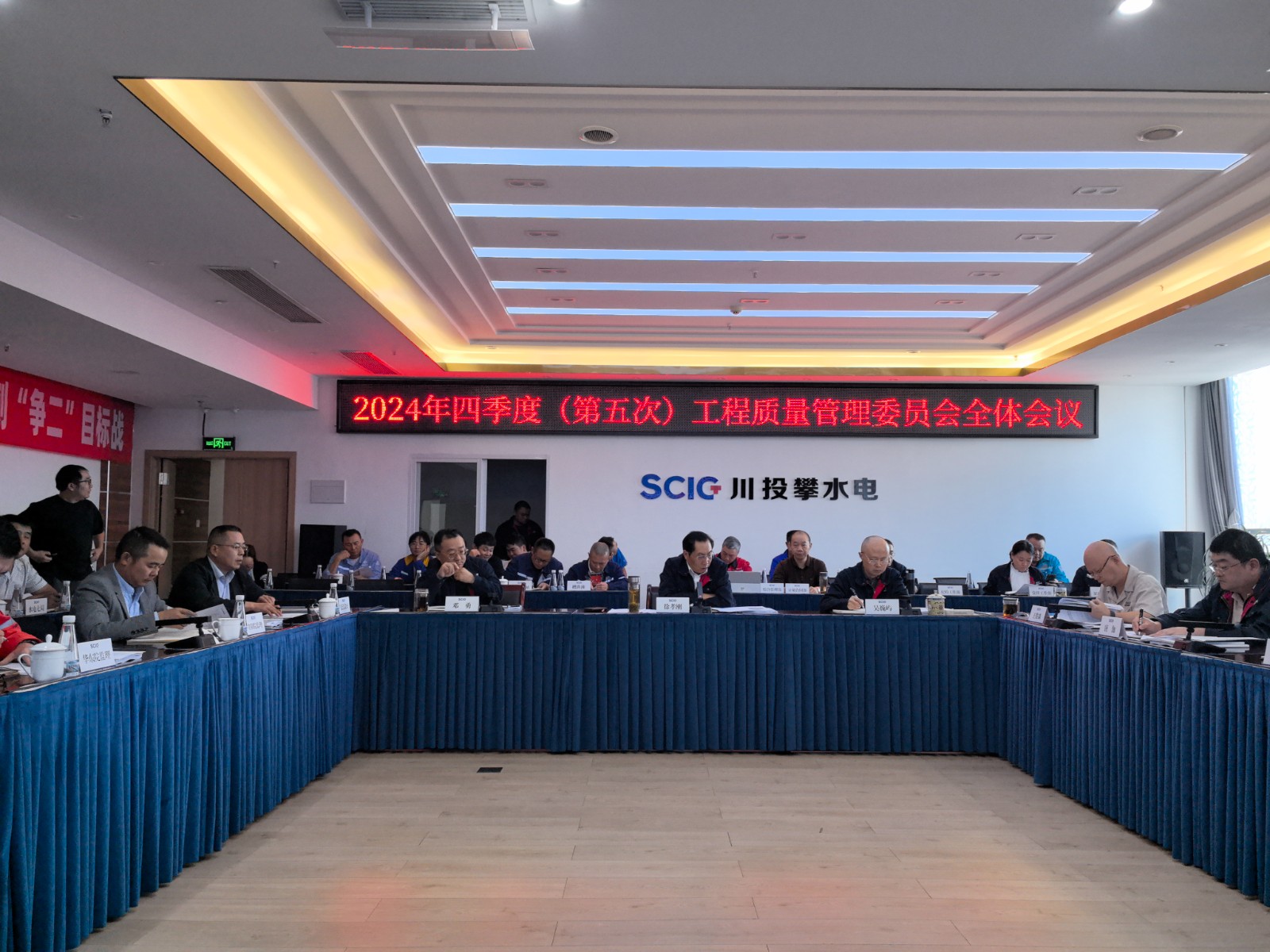 11月16日下午,在银江水电站全力冲刺首台机组发电之际,川投能源攀水电公司召开了2024年四季度工程质量管理委员会全体会议,会议由川投能源副总经理、攀水电公司党总支书记、董事长、质委会主任徐孝刚主持,攀水电公司党总支副书记、总经理、质委会主任吴巍屿及公司领导、各部门、长江设代处、各监理部、第三方检测机构、各施工单位项目部负责人及质量负责人共计40余人参加会议。