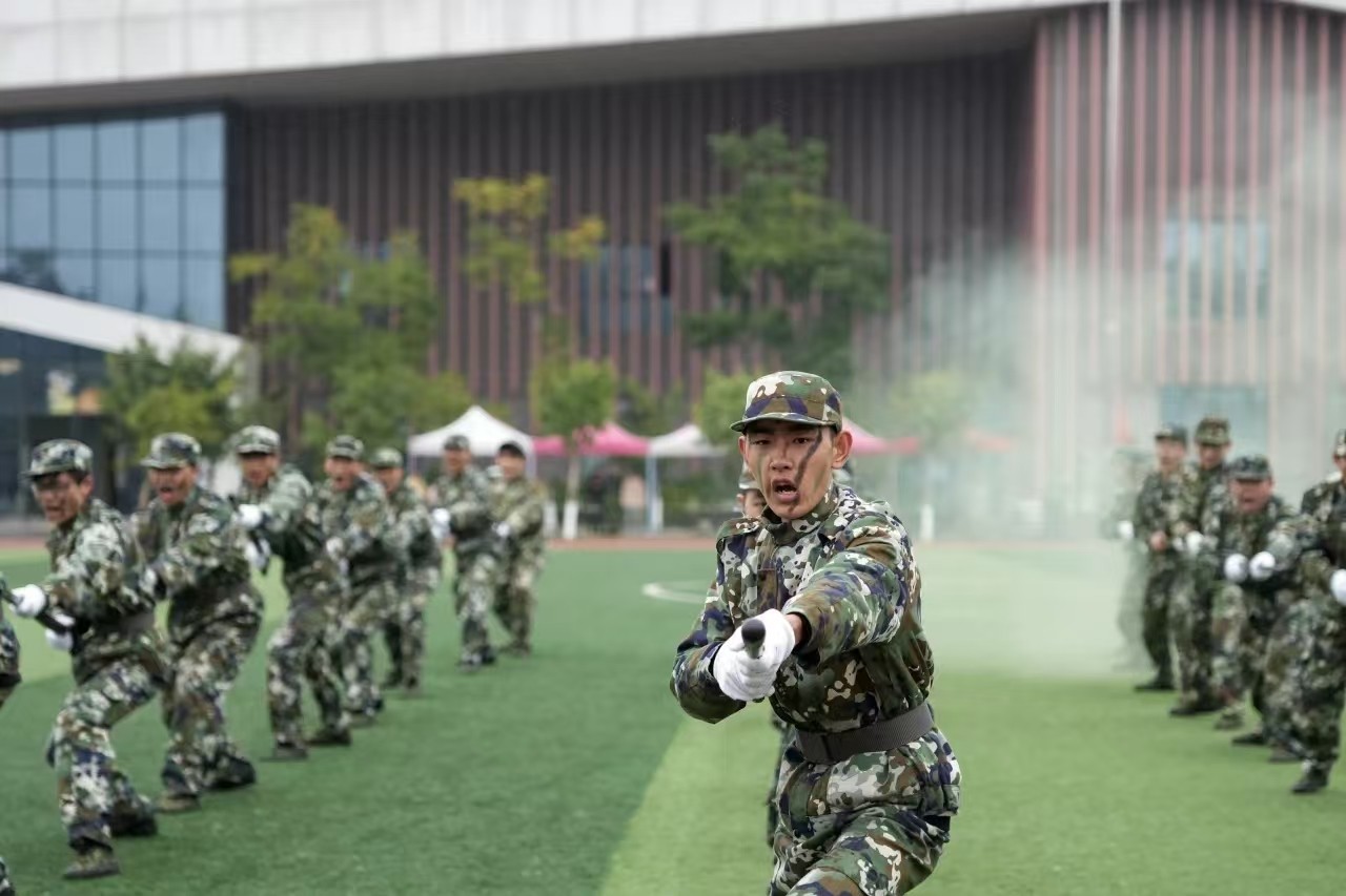 伴随着激昂的国歌,国旗护卫队迈着铿锵有力的步伐入场。全体新生喊着嘹亮的口号,精神抖擞、气宇轩昂地走过主席台,接受分列式检阅。刺杀、擒敌拳、匕首操、旗语、战术科目依次亮相,汇演过程中,充分展现了新生们朝气蓬勃的精神风貌。